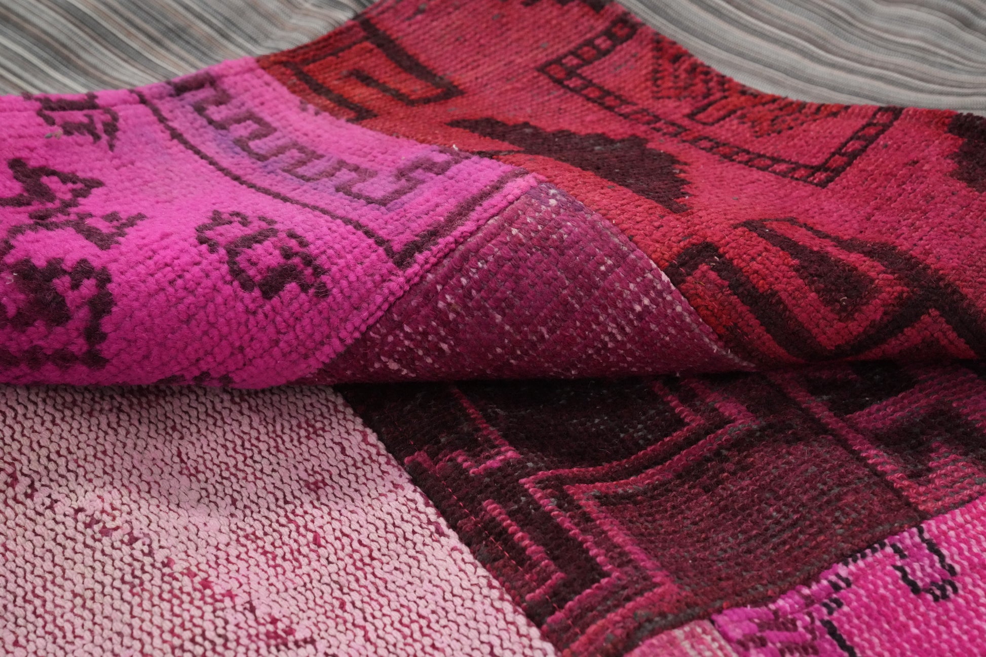 A Beautiful Genuine Turkey Patchwork rug is Hand Knotted by skillful weavers in Turkey with 100% Wool Material. This rug is in New, First Quality condition. dimensions are 9' 11'' X 8' 1'' in foot and 302 X 246 in centimeter. the primary color is Pink.