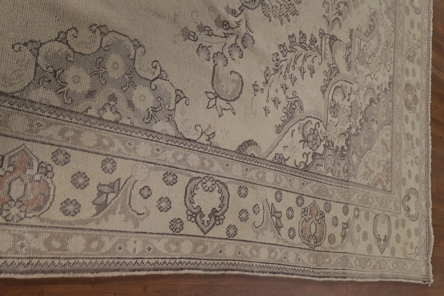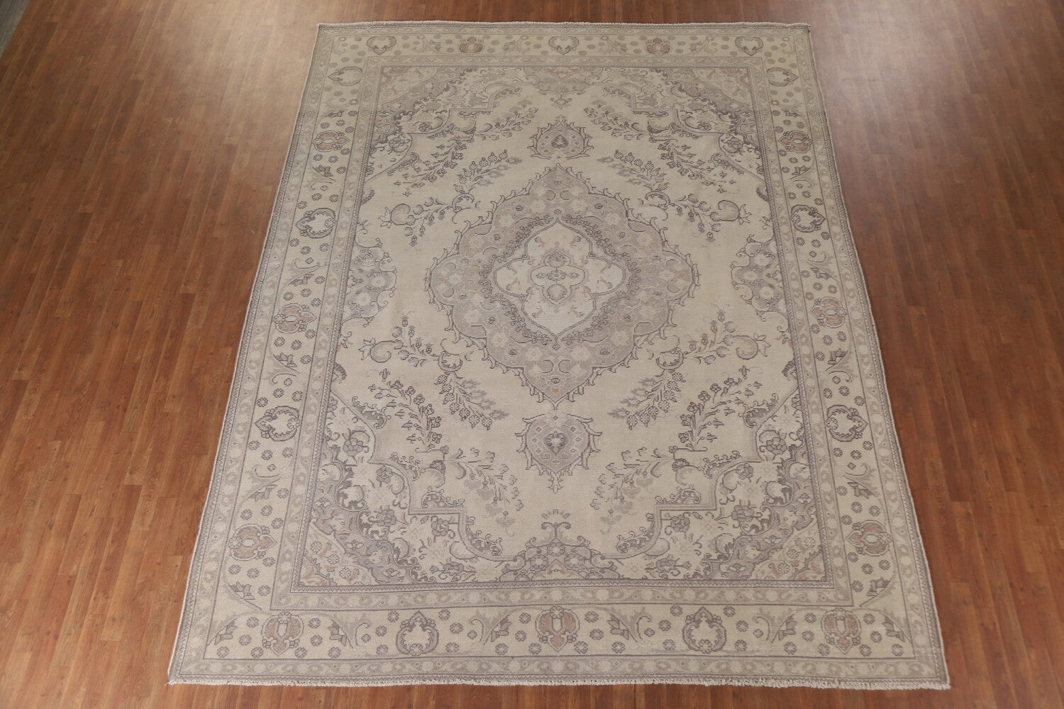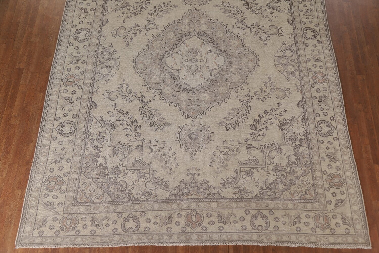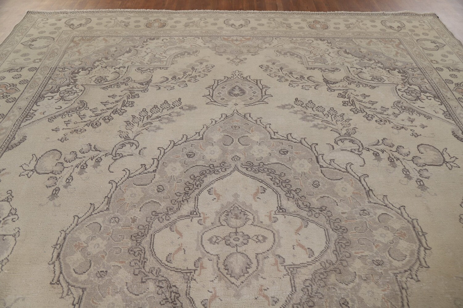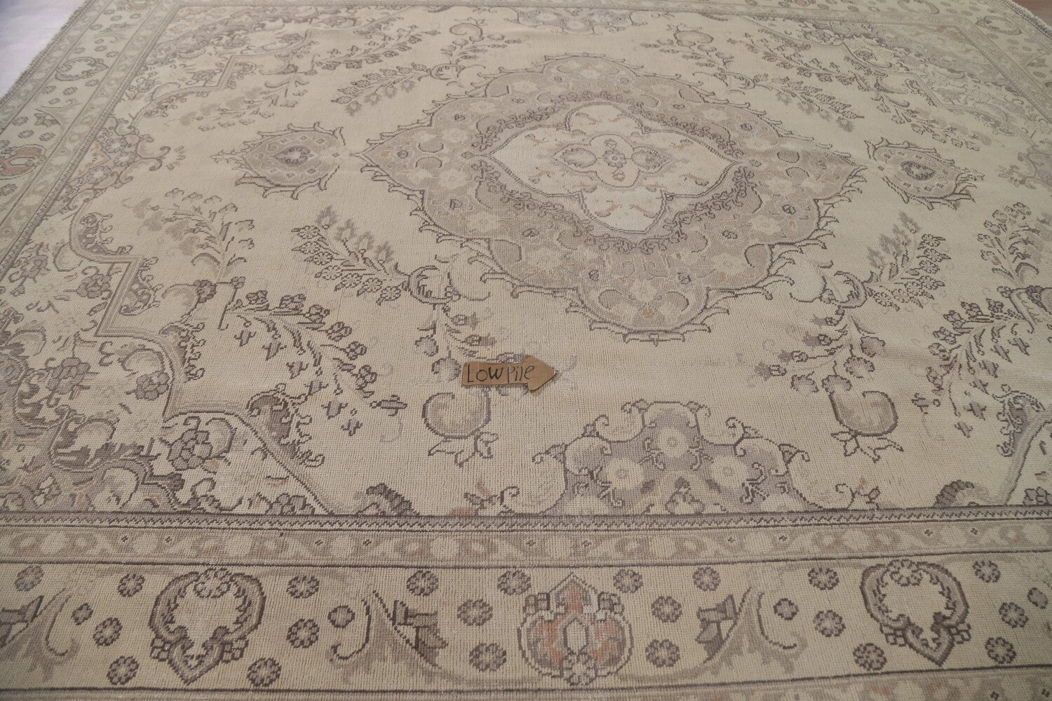 A Beautiful Genuine Persia ( Persia ) Tabriz rug is Hand Knotted by skillful weavers in Persia ( Persia ) with 100% Wool Material. This rug is in Very Good ( Low Pile ) condition. dimensions are 12' 4'' X 9' 10'' in foot and 376 X 300 in centimeter. the primary color is Beige & Ivories.