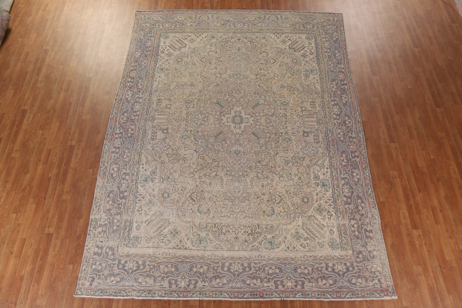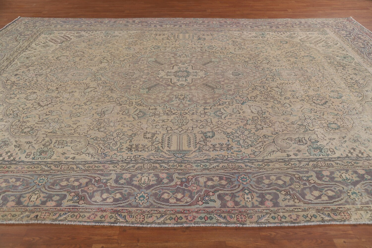 Distressed Wool Tabriz Persian Area Rug 10x13