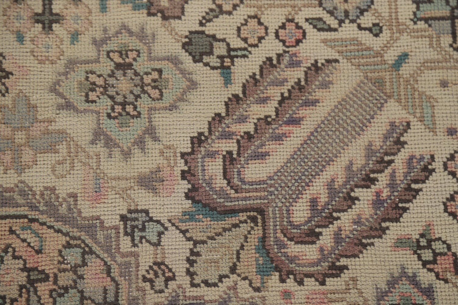 A Beautiful Genuine Persia ( Persia ) Tabriz rug is Hand Knotted by skillful weavers in Persia ( Persia ) with 100% Wool Material. This rug is in Very Good (Evenly Low Pile) condition. dimensions are 12' 6'' X 9' 6'' in foot and 381 X 290 in centimeter. the primary color is Beige & Ivories.
