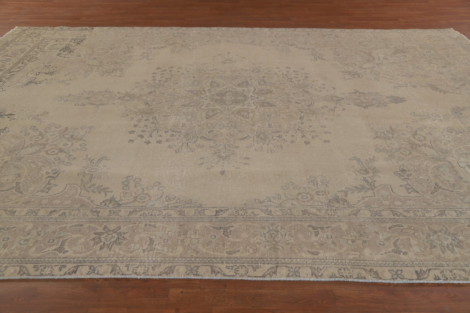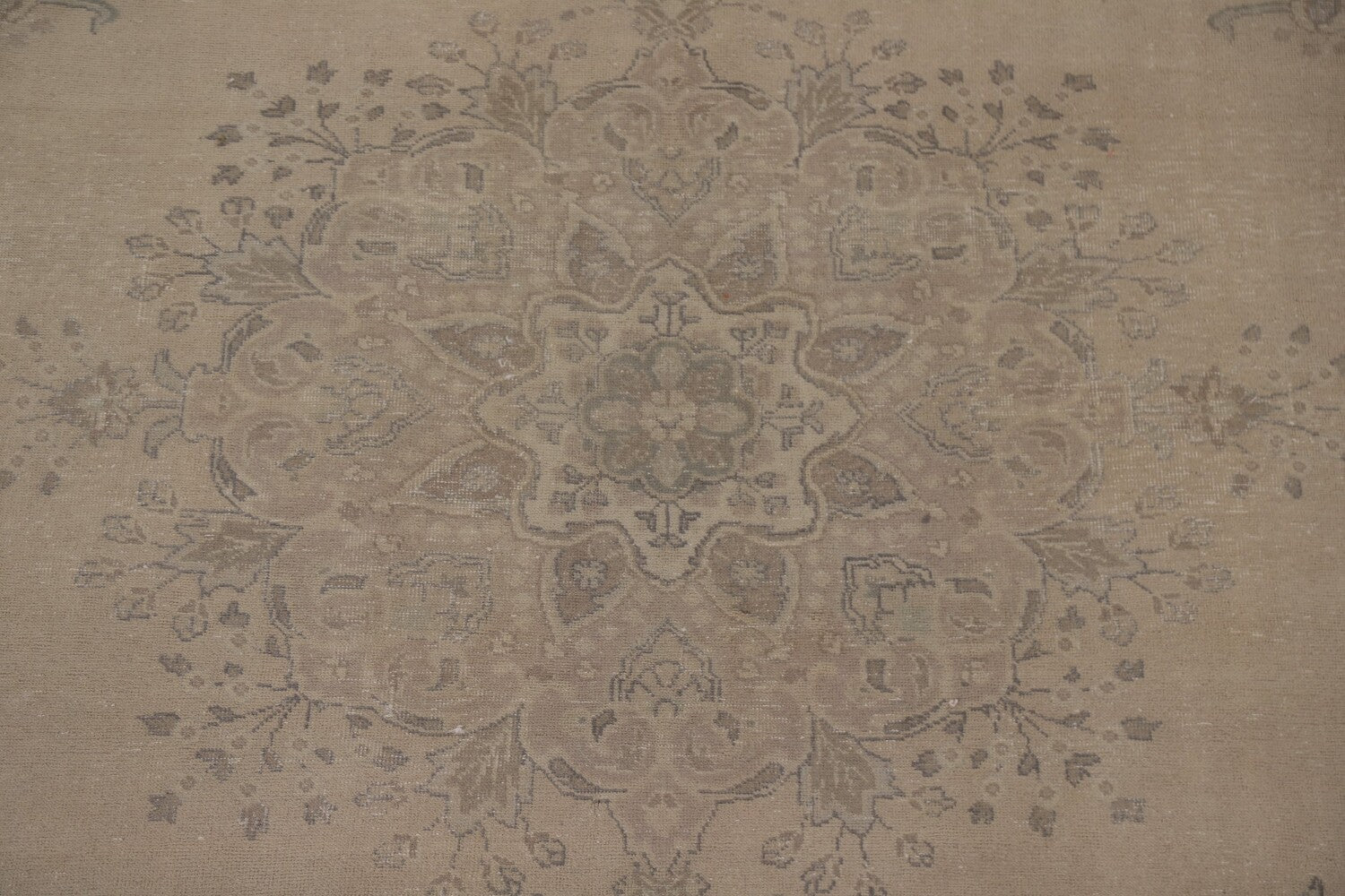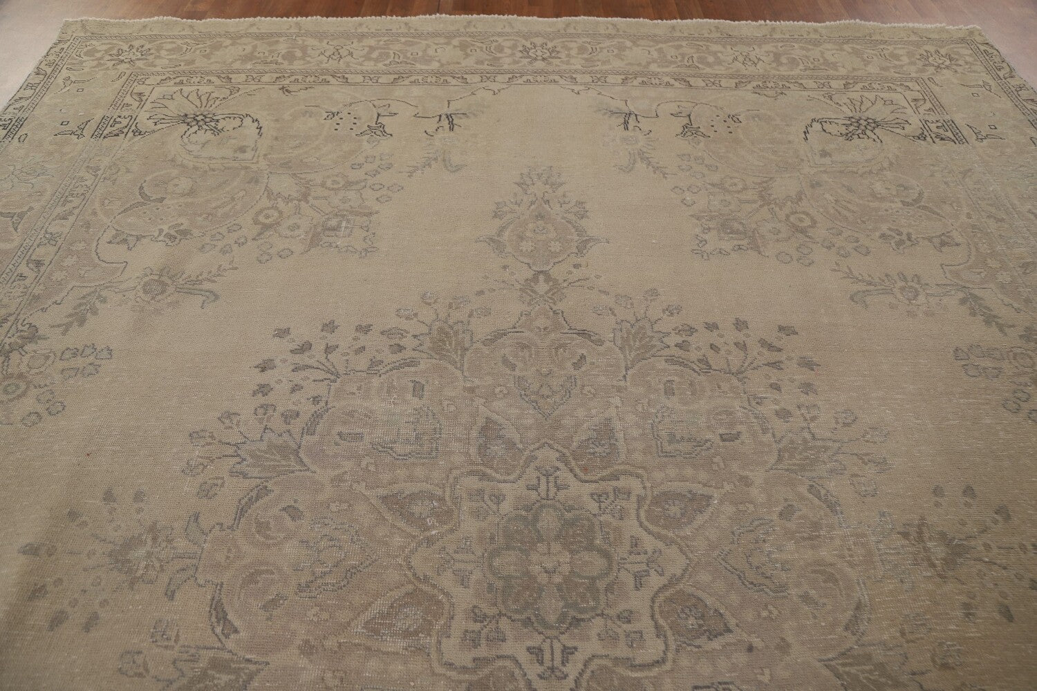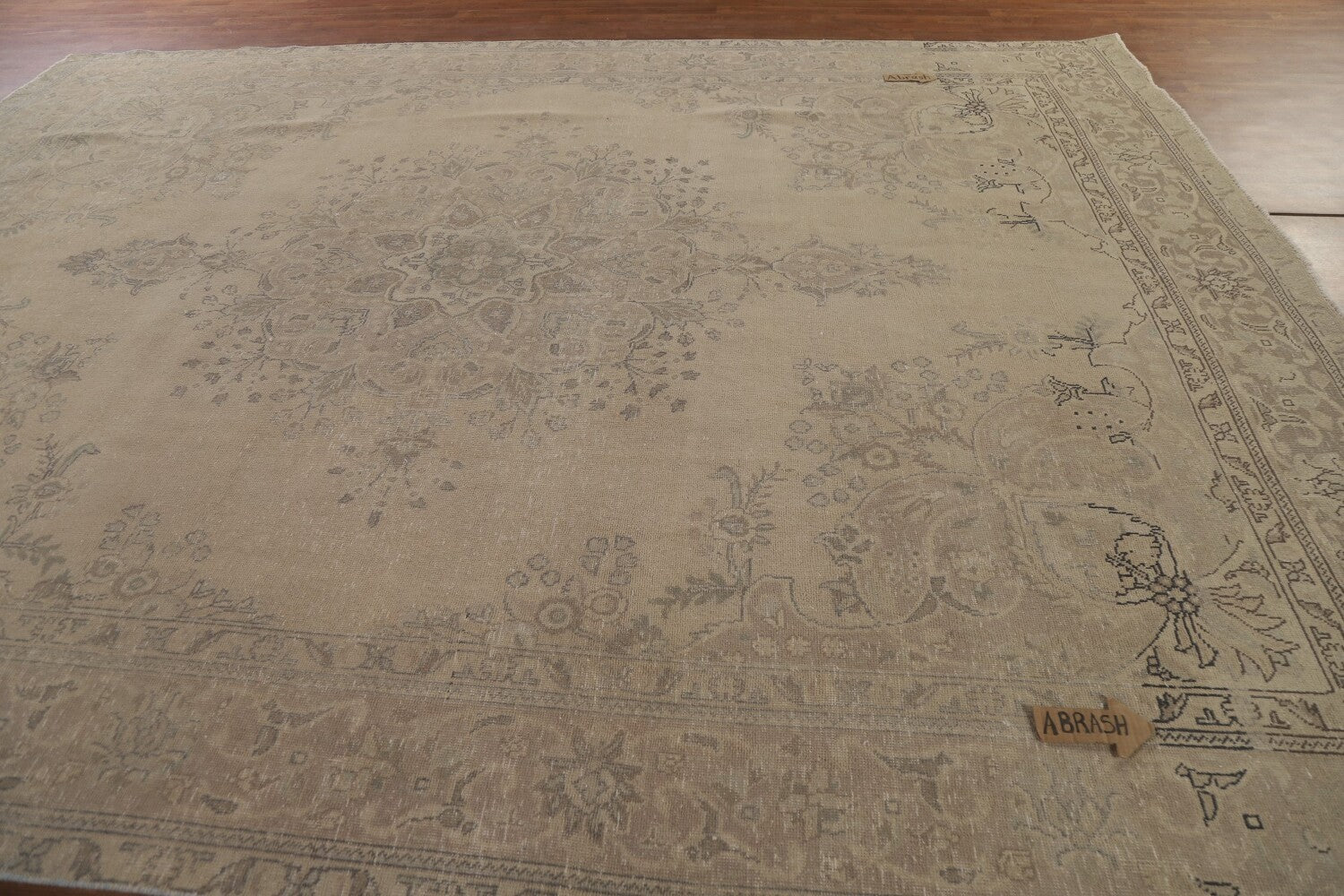 A Beautiful Genuine Persia ( Persia ) Tabriz rug is Hand Knotted by skillful weavers in Persia ( Persia ) with 100% Wool Material. This rug is in Very Good (Evenly Low Pile-Abrash) condition. dimensions are 12' 6'' X 9' 6'' in foot and 381 X 290 in centimeter. the primary color is Beige & Ivories.