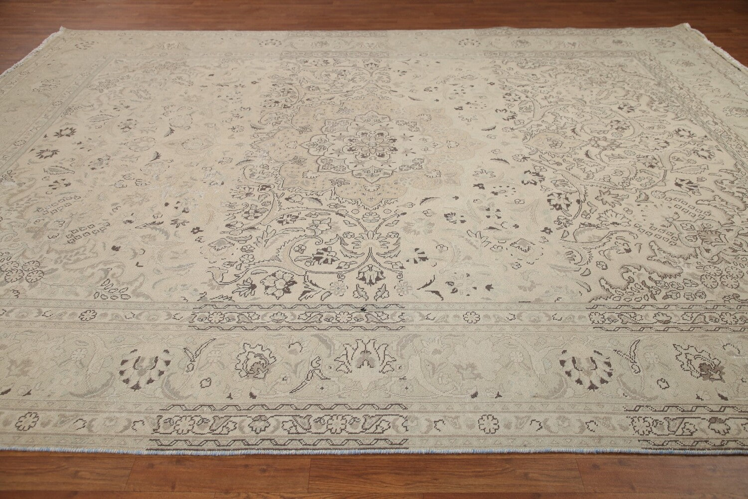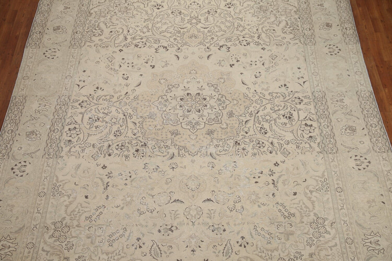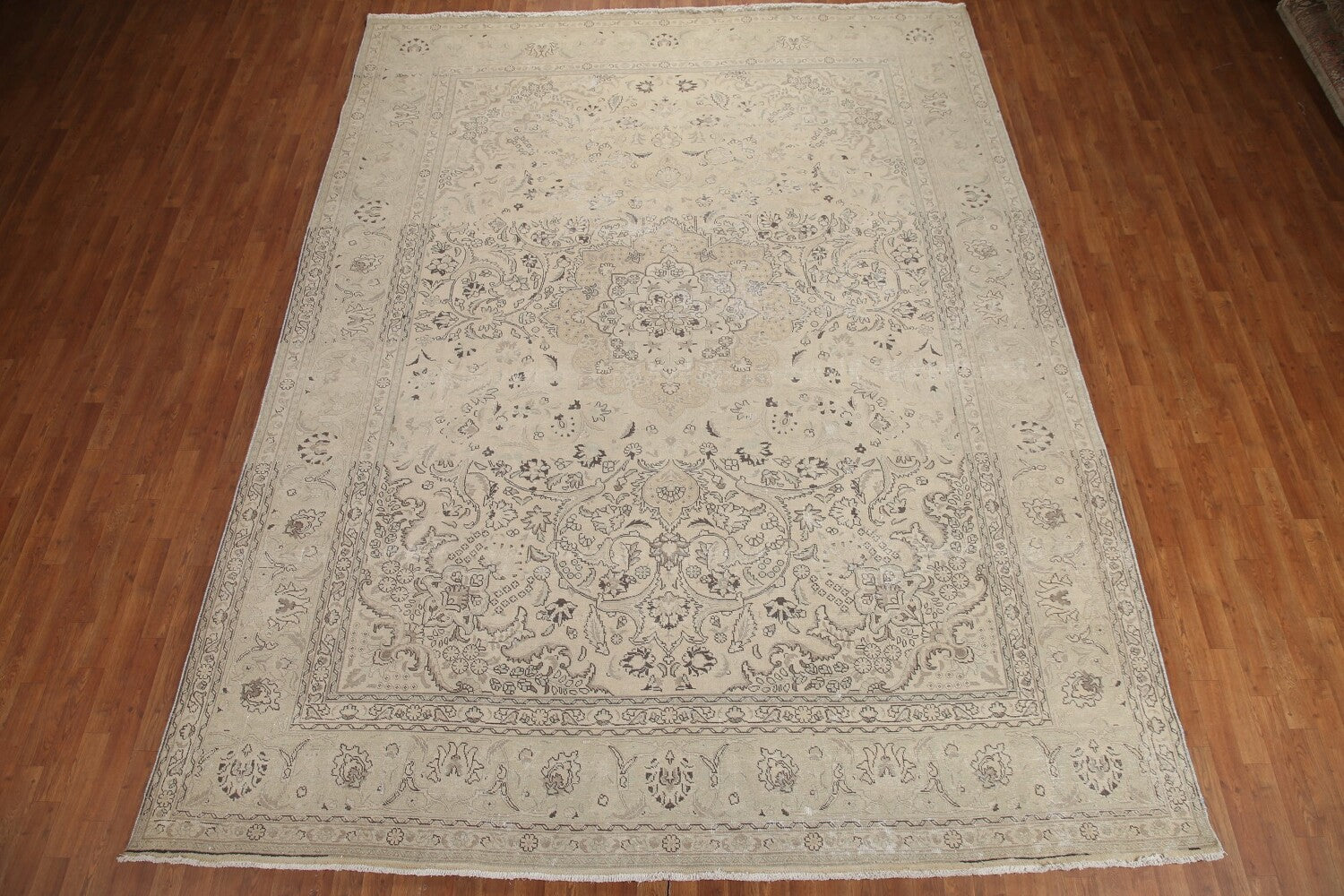A Beautiful Genuine Persia ( Persia ) Tabriz rug is Hand Knotted by skillful weavers in Persia ( Persia ) with 100% Wool Material. This rug is in Very Good (Evenly Low Pile-Abrash) condition. dimensions are 12' 8'' X 9' 9'' in foot and 386 X 297 in centimeter. the primary color is Beige & Ivories.