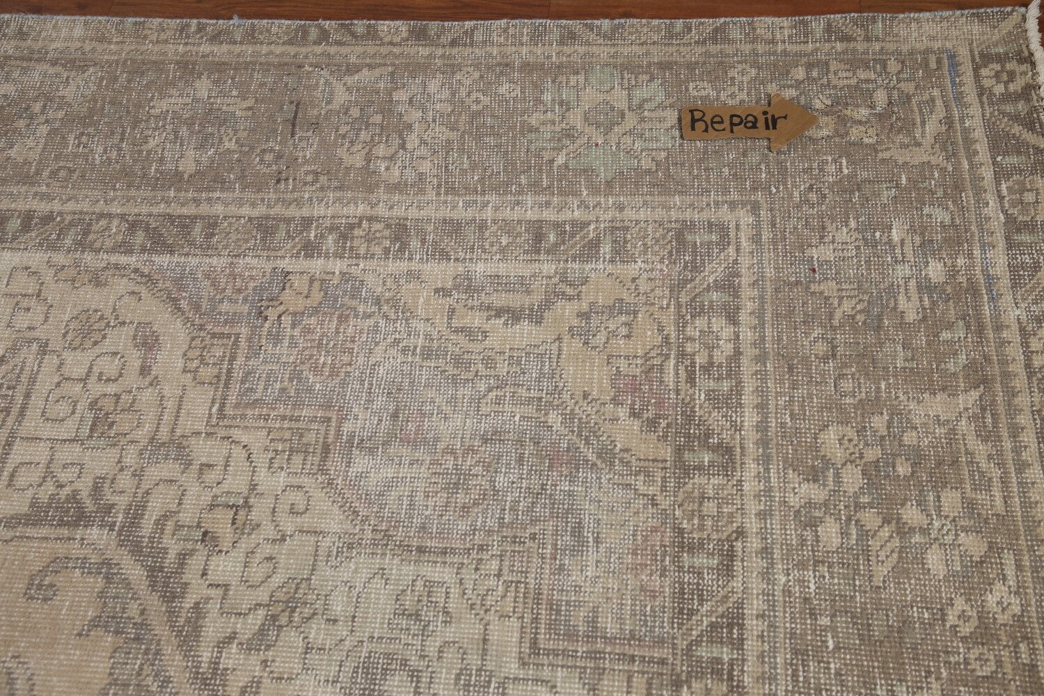 A Beautiful Genuine Persia ( Persia ) Tabriz rug is Hand Knotted by skillful weavers in Persia ( Persia ) with 100% Wool Material. This rug is in Very Good (Low Pile-Repair) condition. dimensions are 12' 6'' X 9' 6'' in foot and 381 X 290 in centimeter. the primary color is Beige & Ivories.