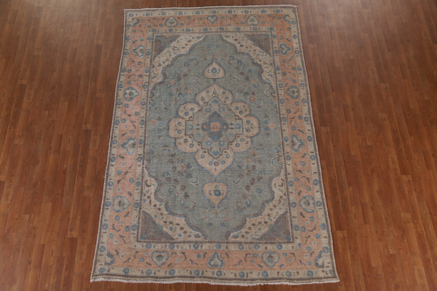 Distressed Wool Tabriz Persian Area Rug 6x10