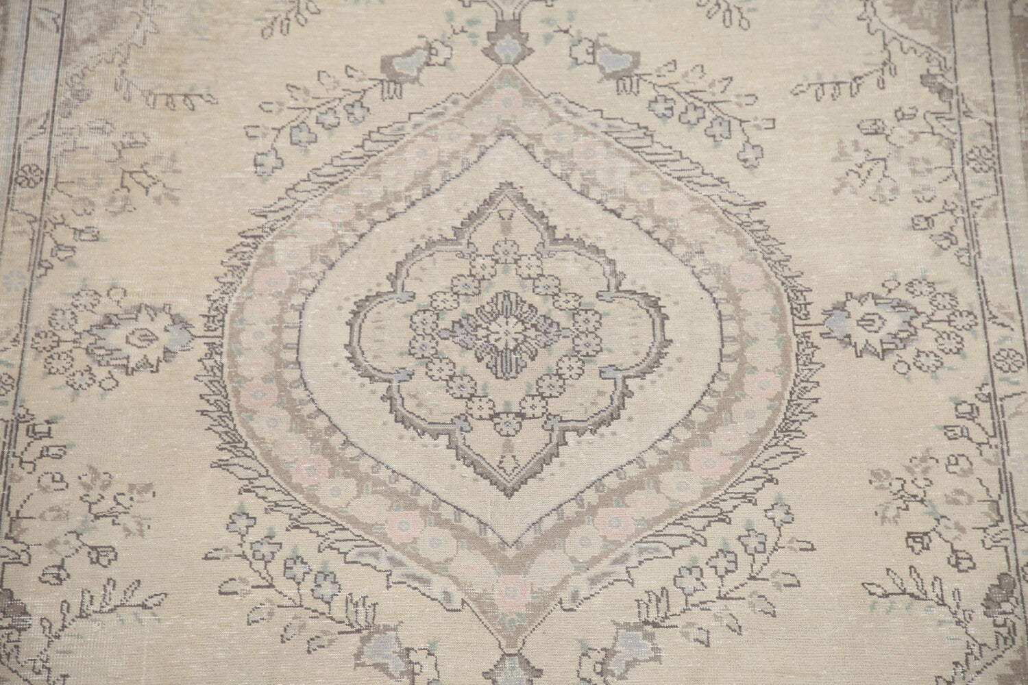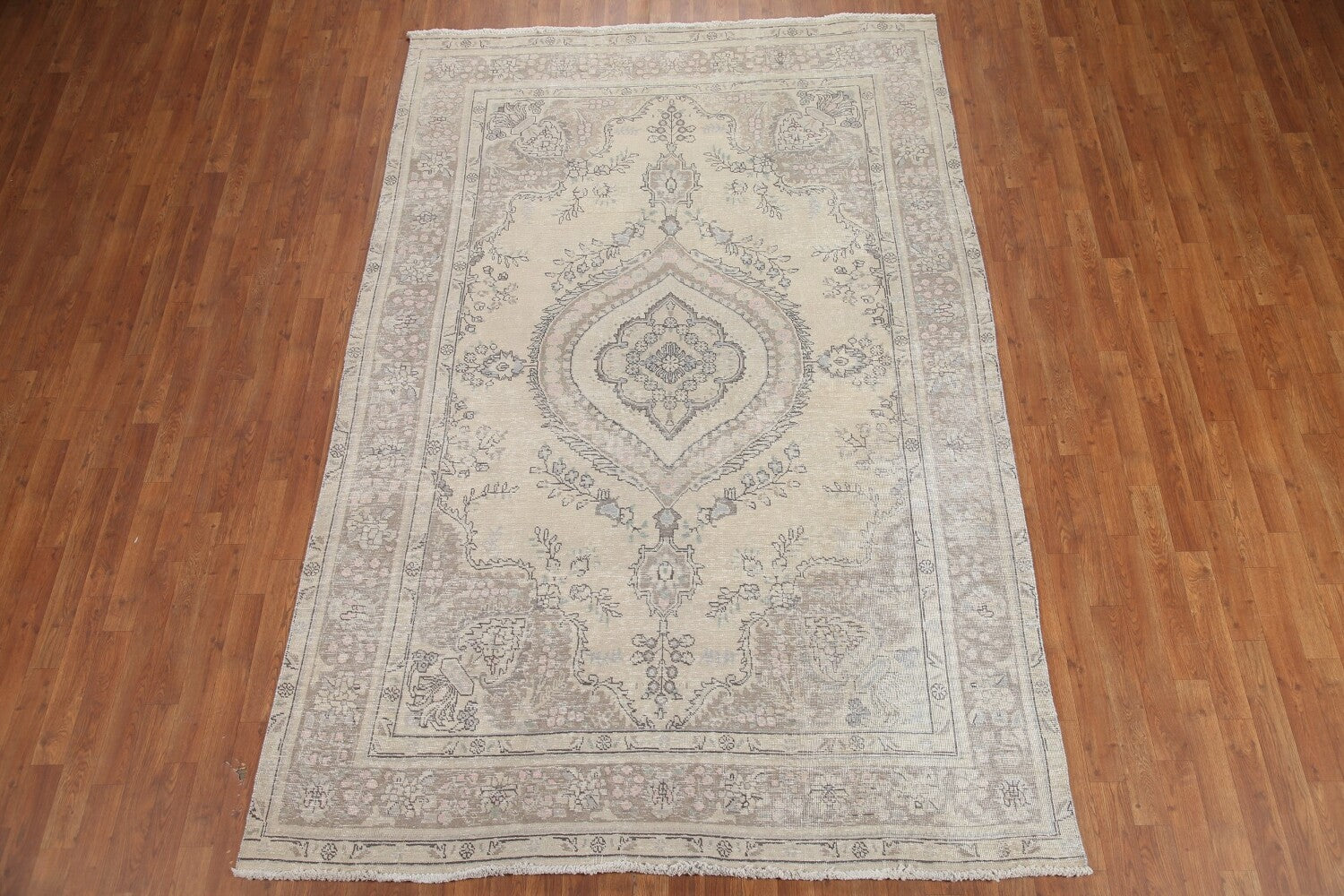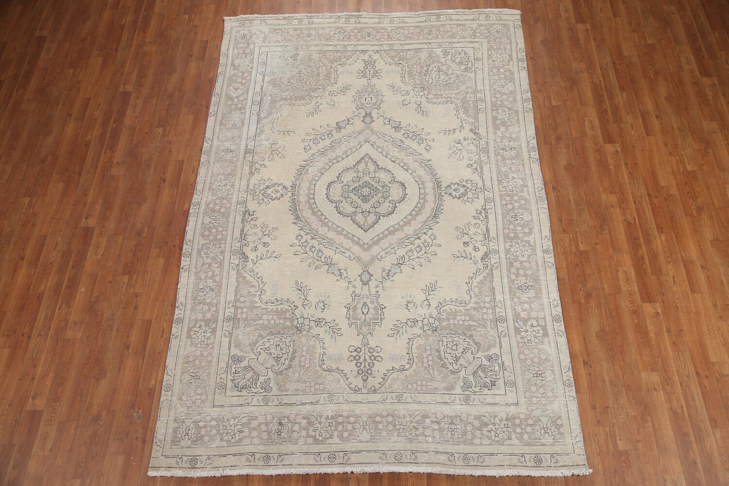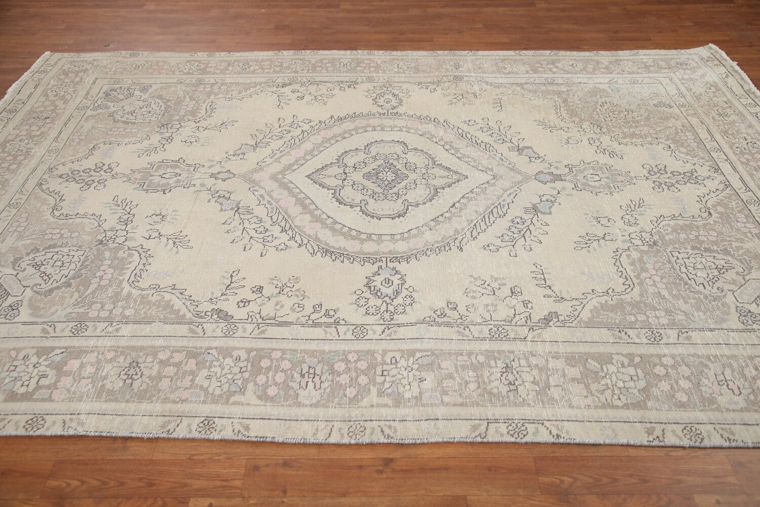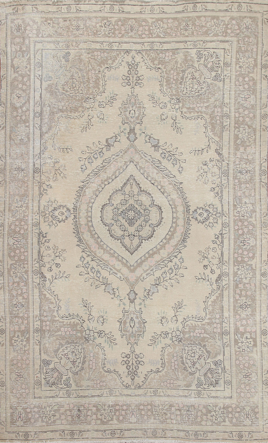 A Beautiful Genuine Persia ( Persia ) Tabriz rug is Hand Knotted by skillful weavers in Persia ( Persia ) with 100% Wool Material. This rug is in Very Good (Evenly Low Pile) condition. dimensions are 9' 6'' X 6' 4'' in foot and 290 X 193 in centimeter. the primary color is Beige & Ivories.