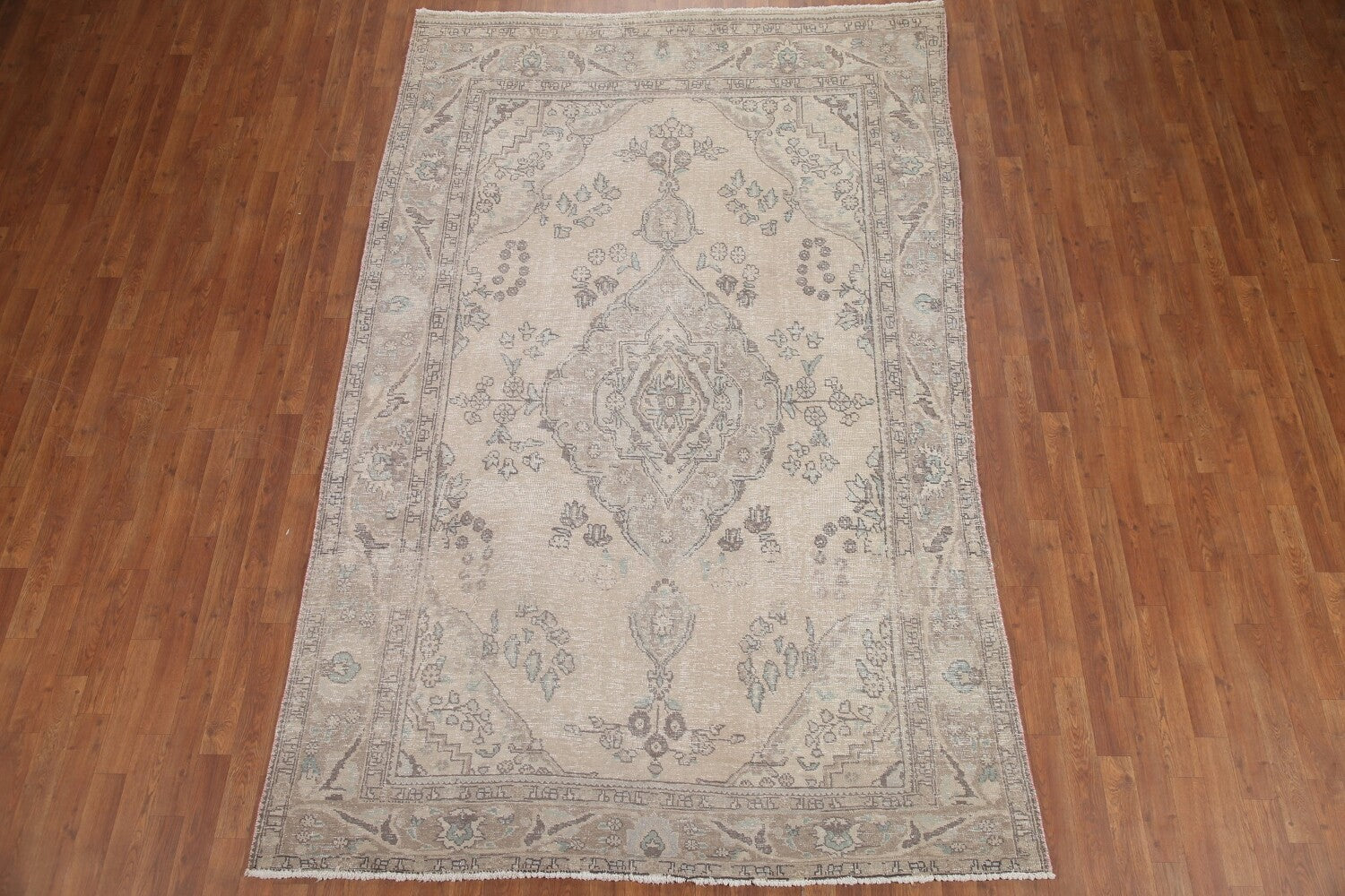 Distressed Wool Tabriz Persian Area Rug 6x10