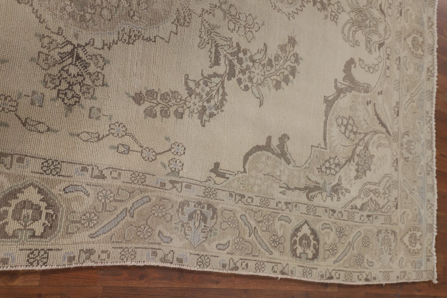 A Beautiful Genuine Persia ( Persia ) Tabriz rug is Hand Knotted by skillful weavers in Persia ( Persia ) with 100% Wool Material. This rug is in Very Good (Evenly Low Pile) condition. dimensions are 9' 9'' X 6' 2'' in foot and 297 X 188 in centimeter. the primary color is Beige & Ivories.