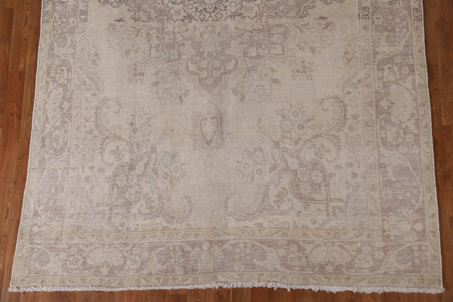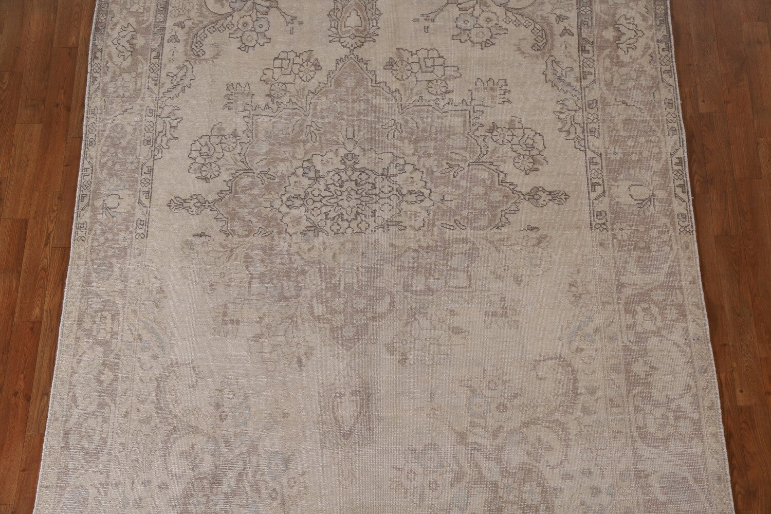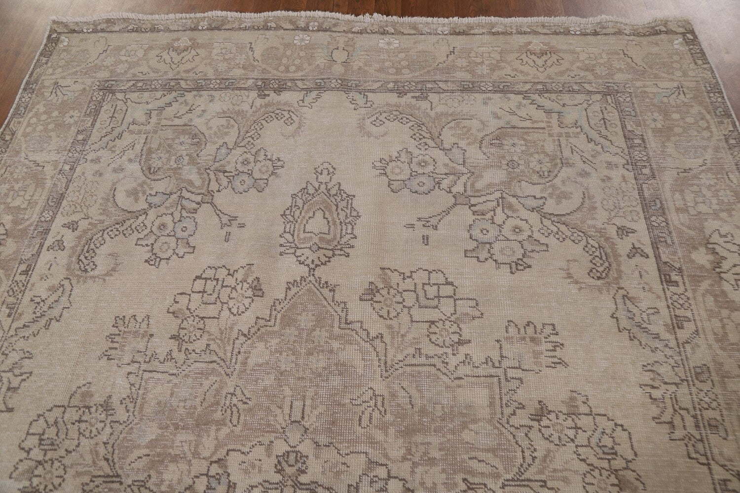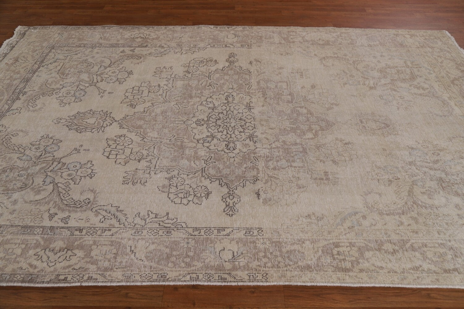A Beautiful Genuine Persia ( Persia ) Tabriz rug is Hand Knotted by skillful weavers in Persia ( Persia ) with 100% Wool Material. This rug is in Very Good (Evenly Low Pile-Abrash) condition. dimensions are 9' 9'' X 6' 5'' in foot and 297 X 196 in centimeter. the primary color is Beige & Ivories.