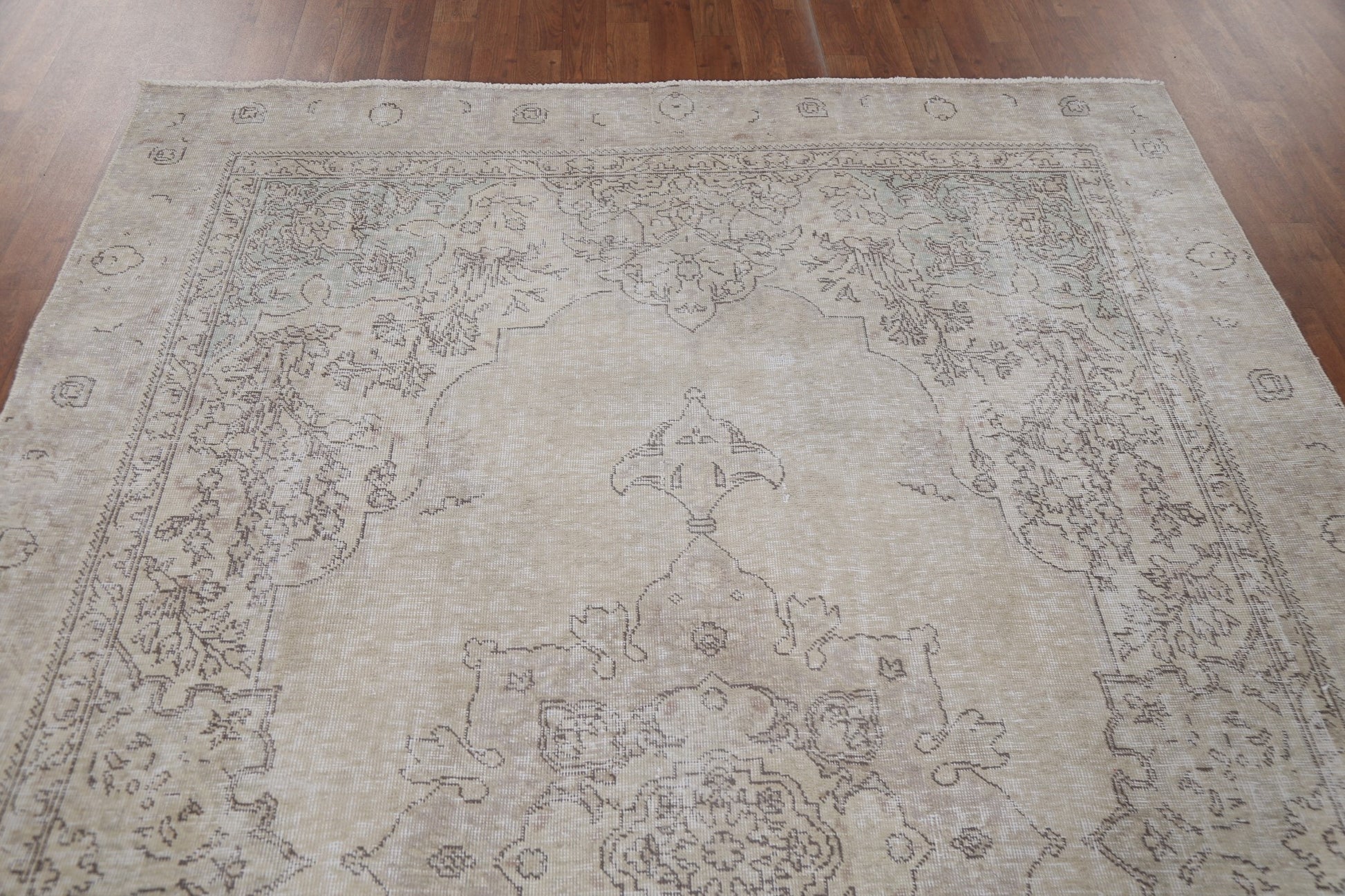 A Beautiful Genuine Persia ( Persia ) Tabriz rug is Hand Knotted by skillful weavers in Persia ( Persia ) with 100% Wool Material. This rug is in Very Good (Evenly Low Pile) condition. dimensions are 9' 3'' X 6' 1'' in foot and 282 X 185 in centimeter. the primary color is Beige & Ivories.