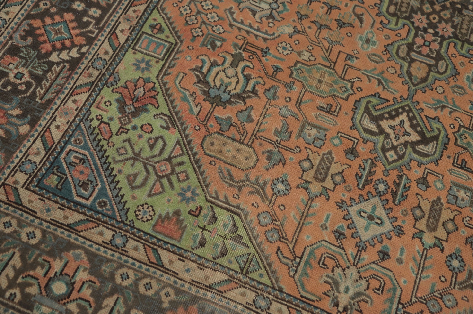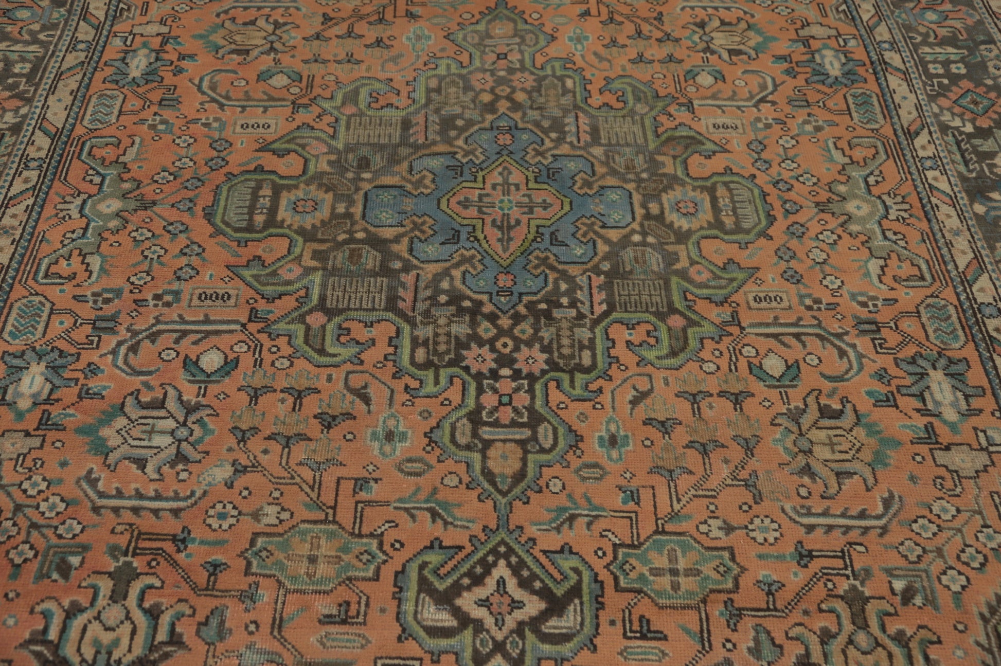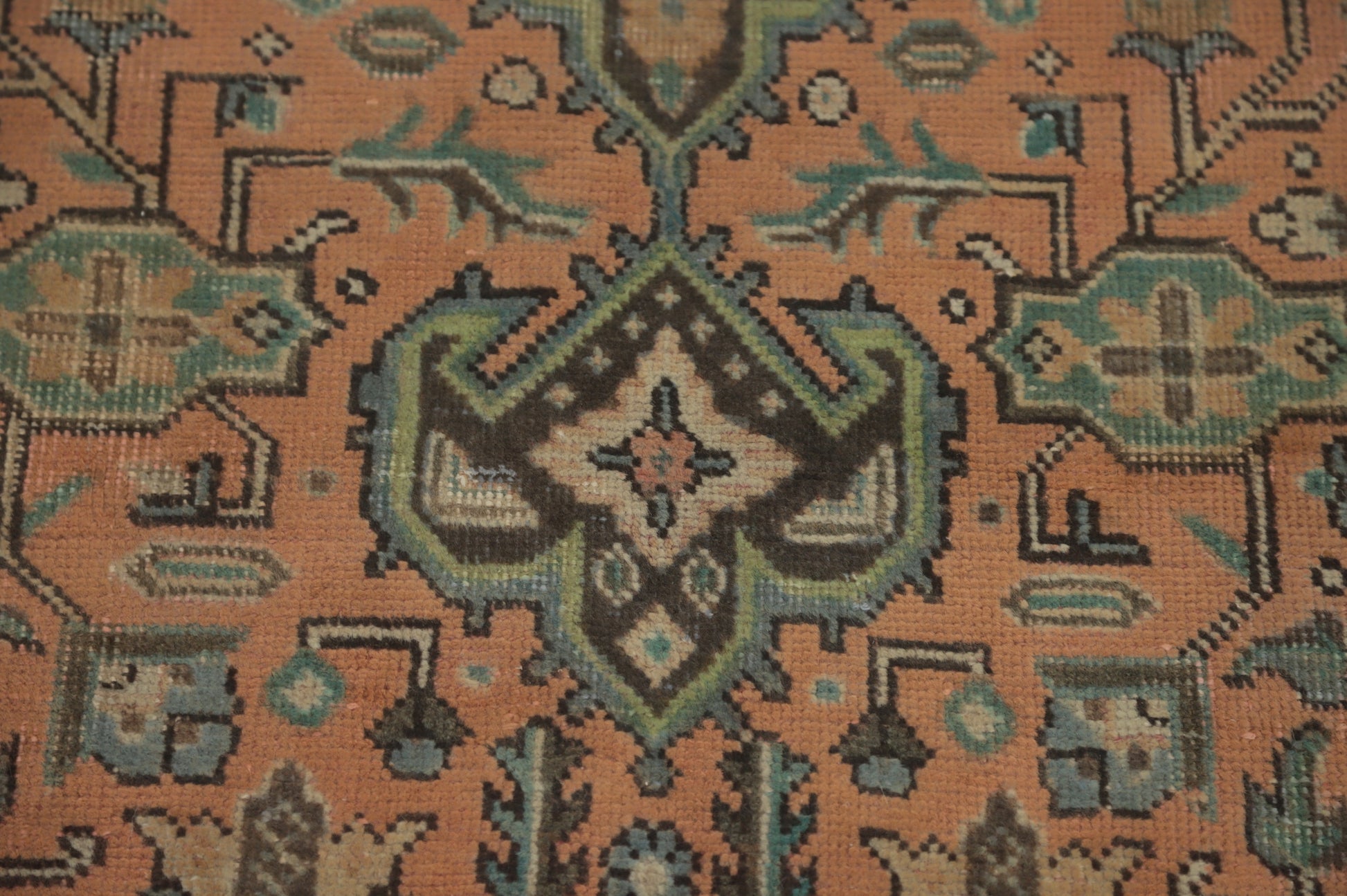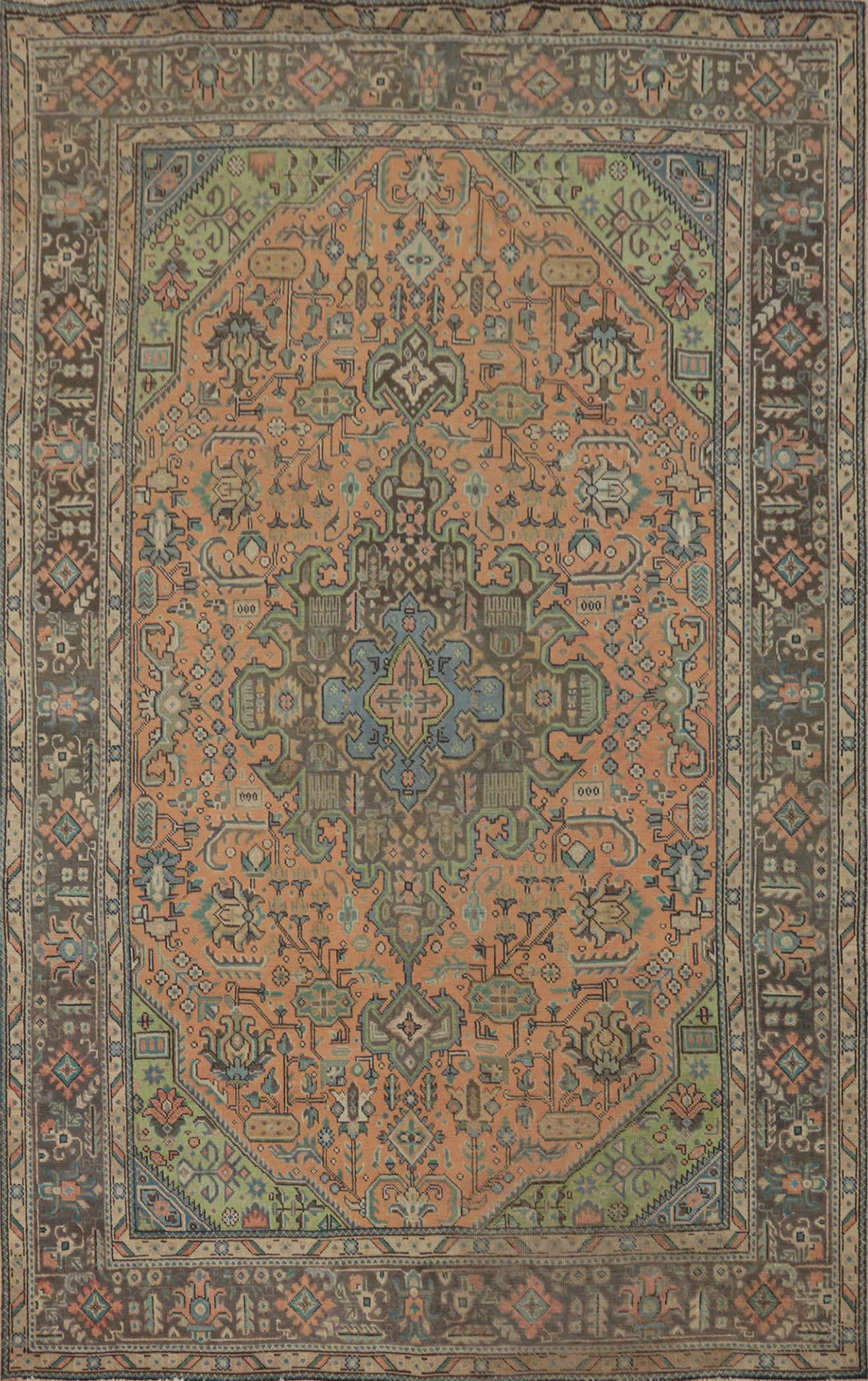 A Beautiful Genuine Persia ( Persia ) Tabriz rug is Hand Knotted by skillful weavers in Persia ( Persia ) with 100% Wool Material. This rug is in Very Good (Evenly Low Pile) condition. dimensions are 9' 5'' X 6' 5'' in foot and 287 X 196 in centimeter. the primary color is Peach.