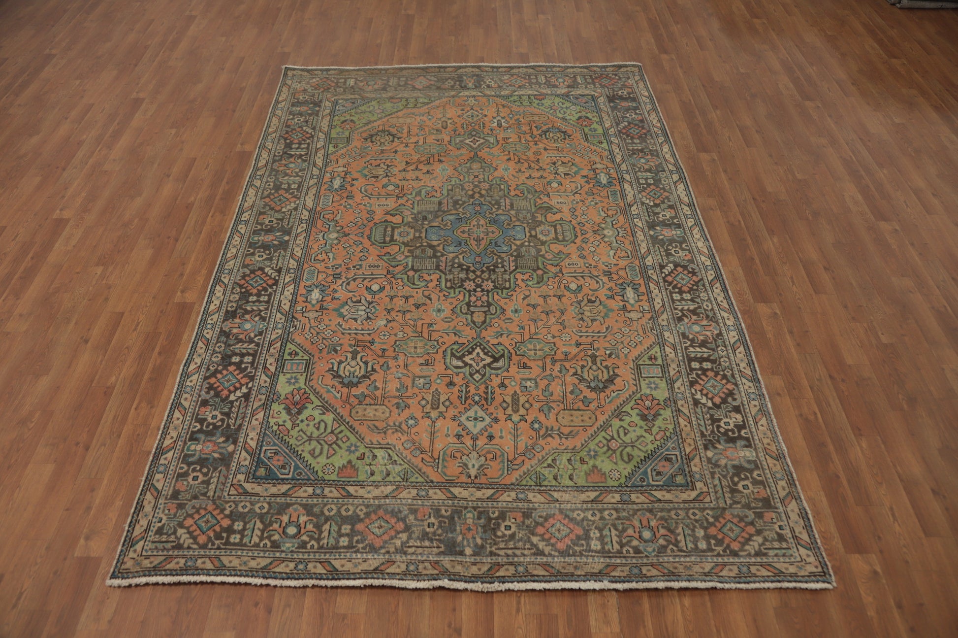 Distressed Wool Tabriz Persian Area Rug 6x9