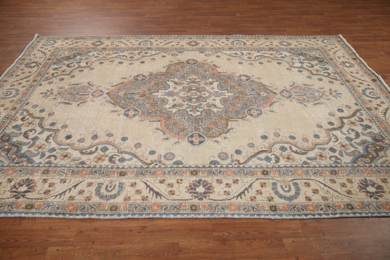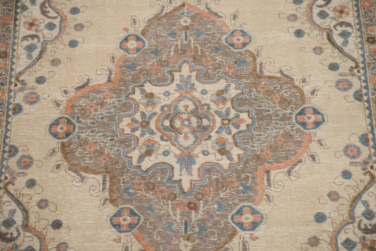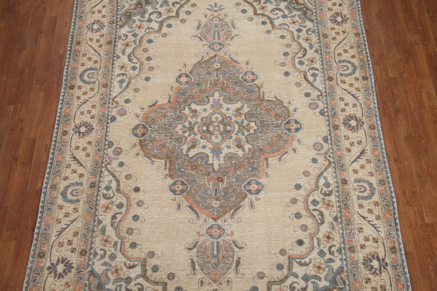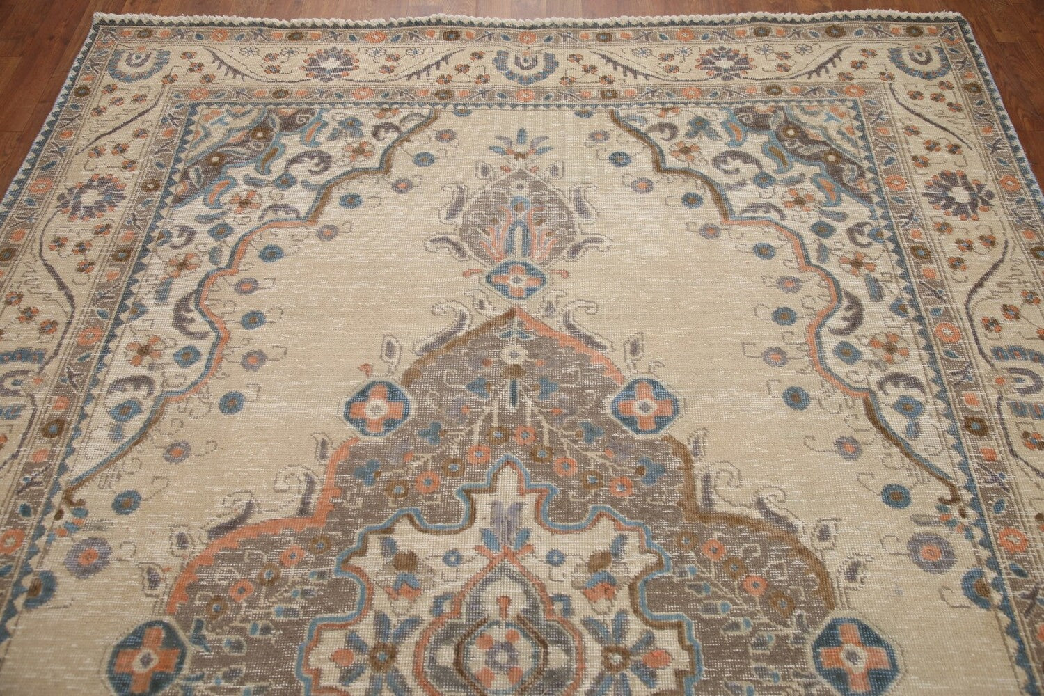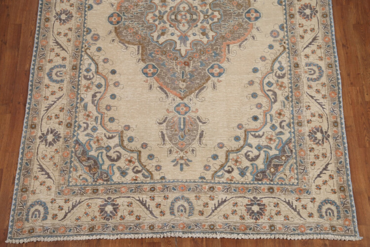 A Beautiful Genuine Persia ( Persia ) Tabriz rug is Hand Knotted by skillful weavers in Persia ( Persia ) with 100% Wool Material. This rug is in Very Good (Evenly Low Pile) condition. dimensions are 9' 5'' X 6' 5'' in foot and 287 X 196 in centimeter. the primary color is Beige & Ivories.