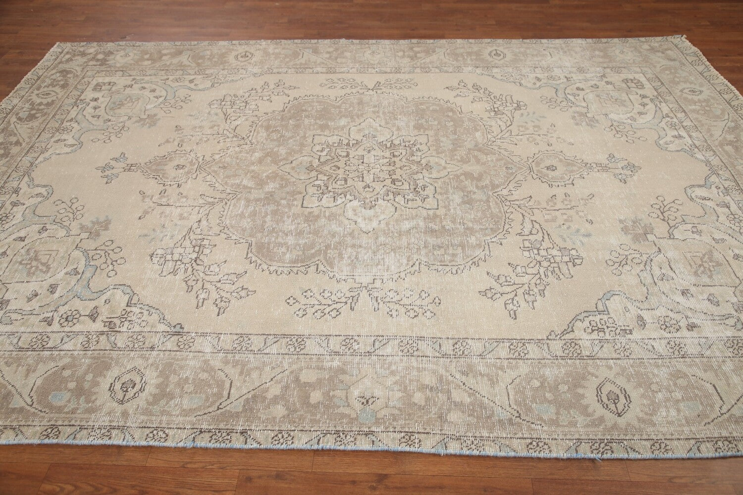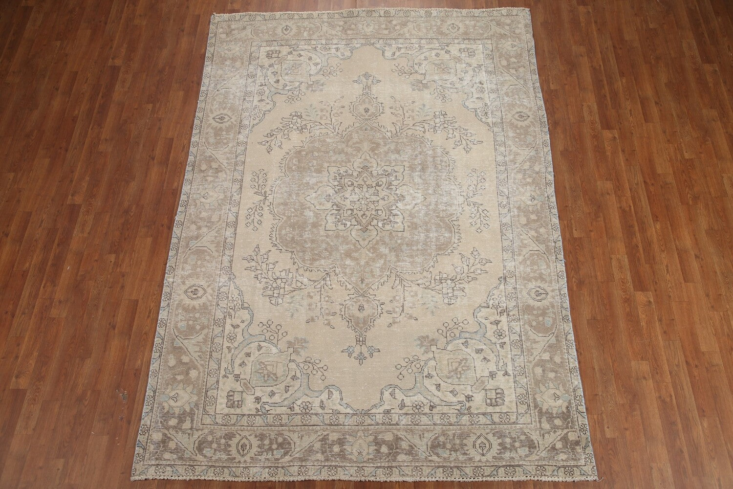 Distressed Wool Tabriz Persian Area Rug 6x9