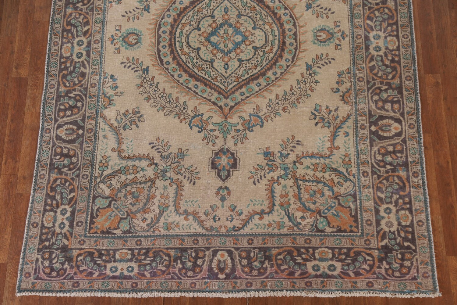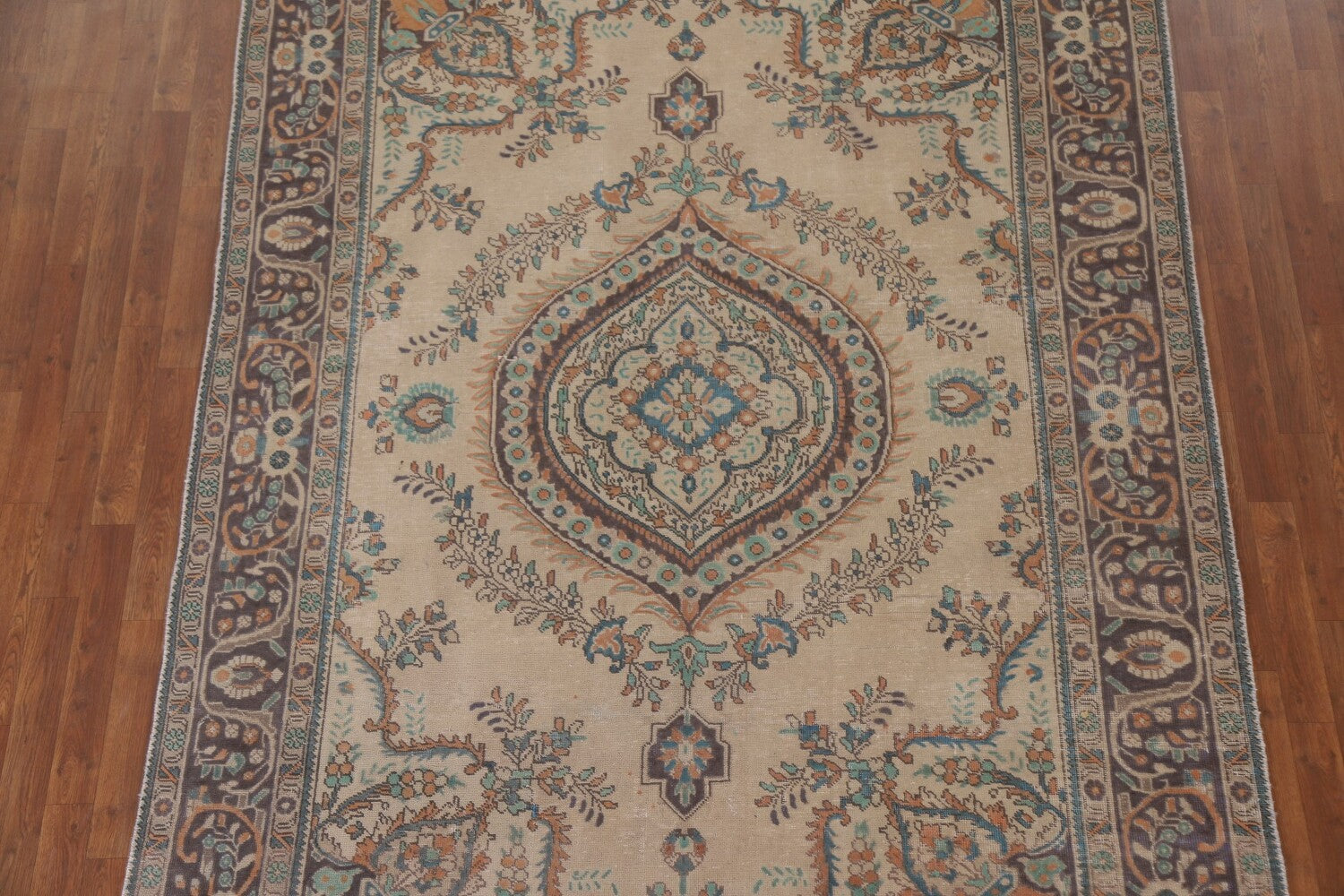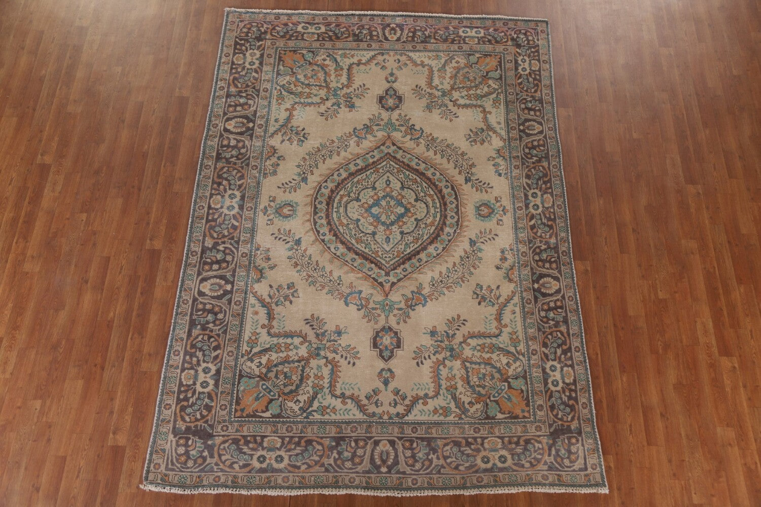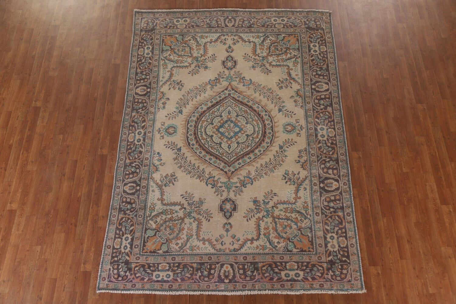 Distressed Wool Tabriz Persian Area Rug 7x10
