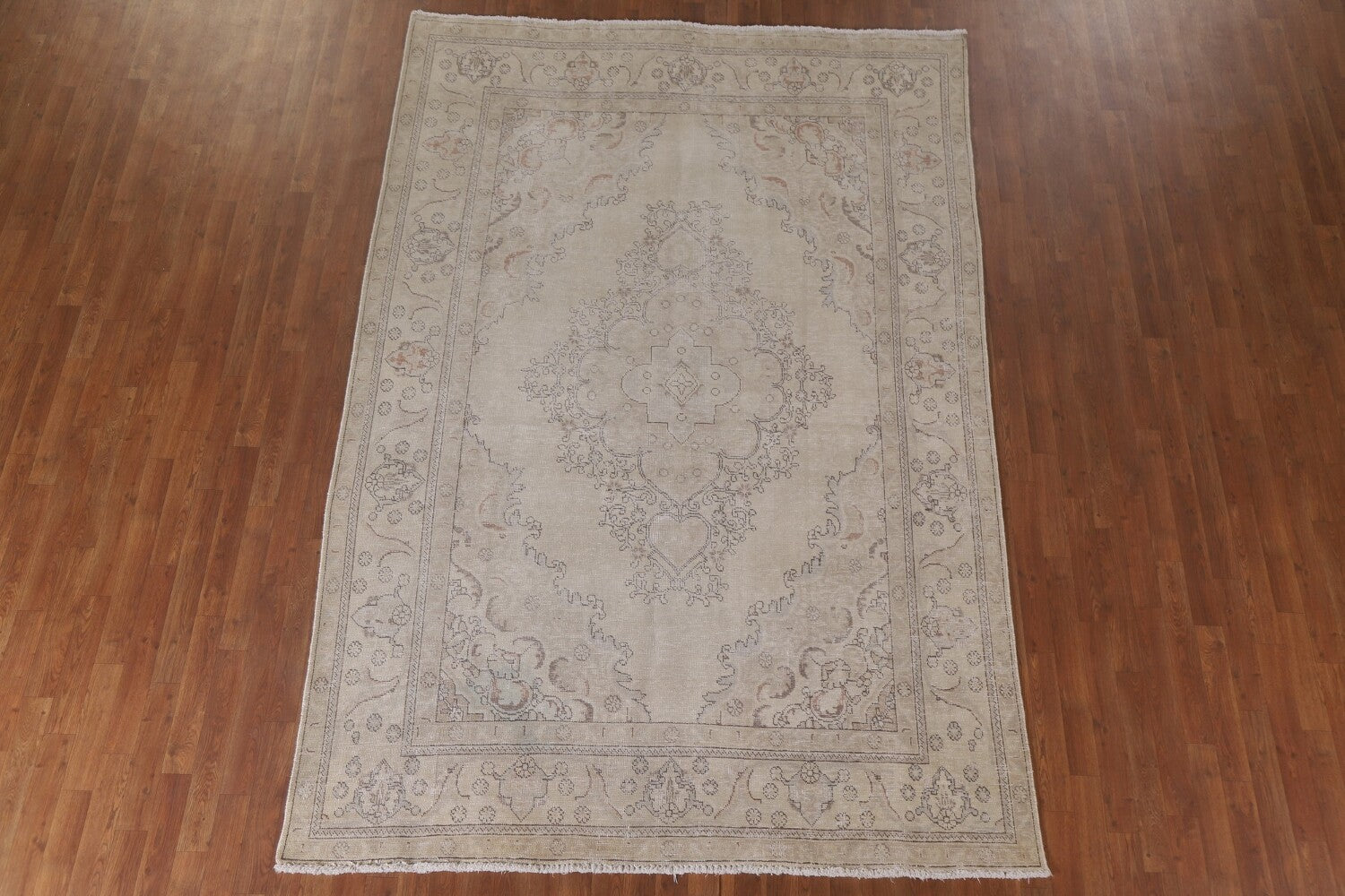 Distressed Wool Tabriz Persian Area Rug 7x10