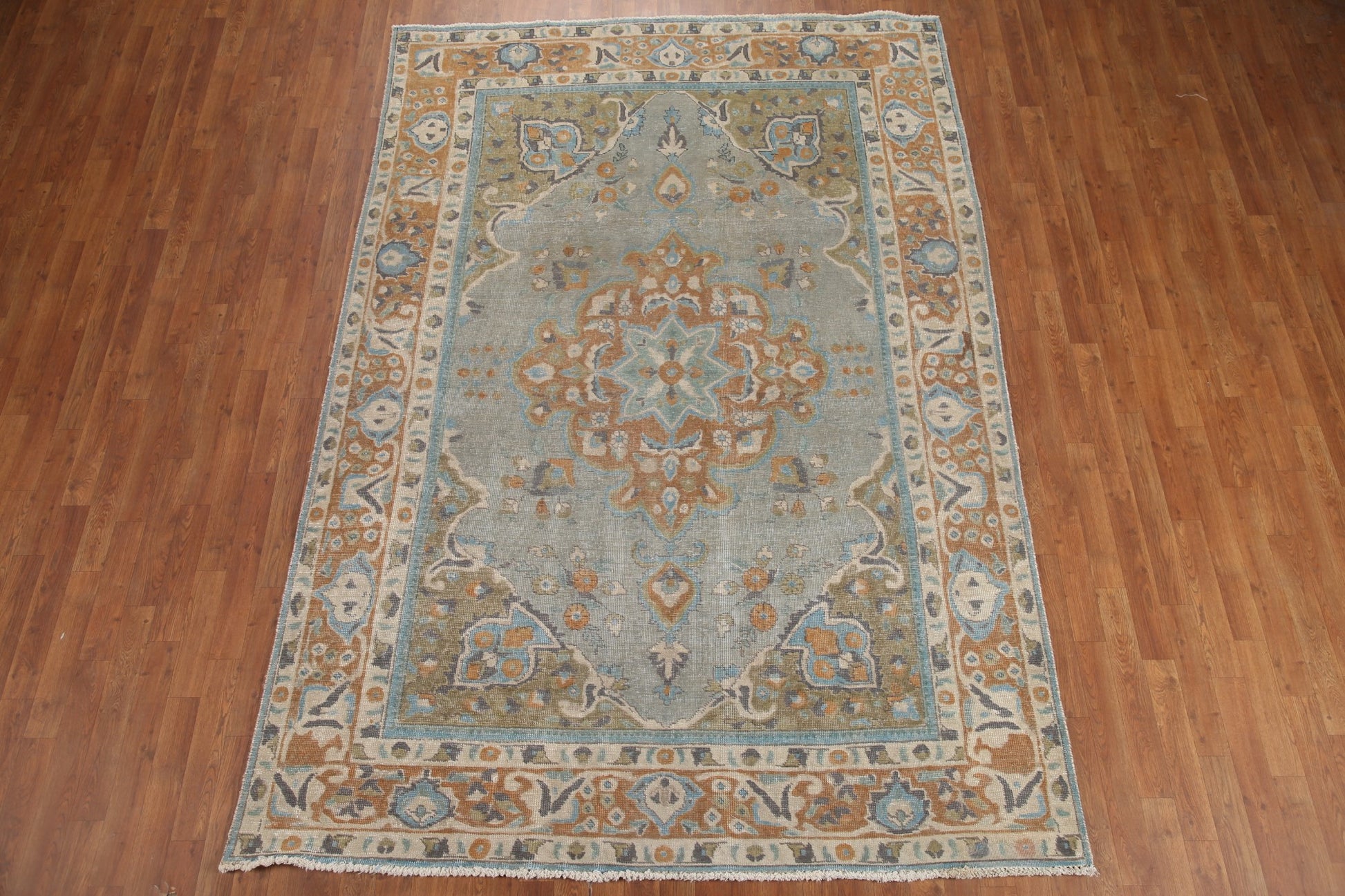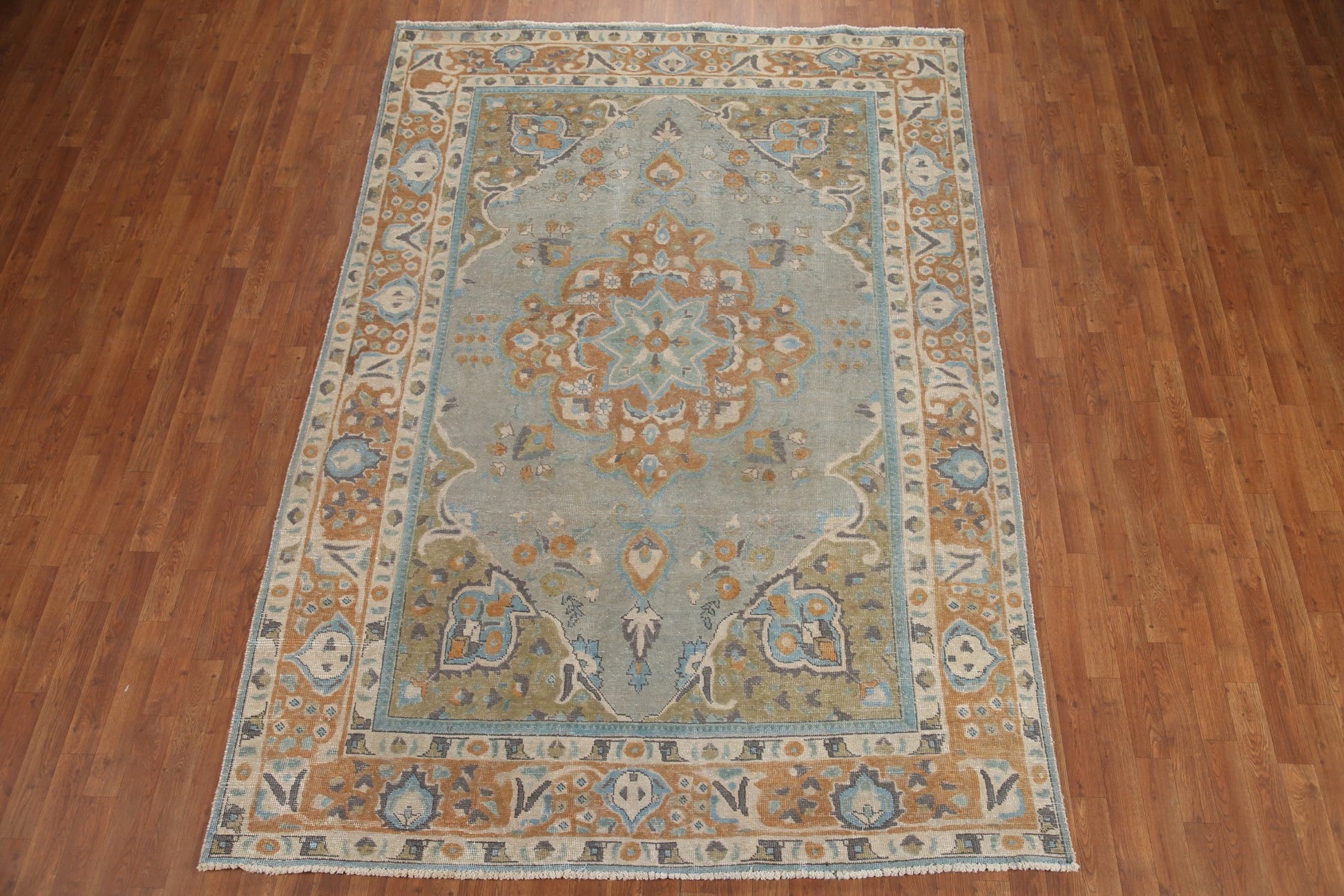 Distressed Wool Tabriz Persian Area Rug 7x10