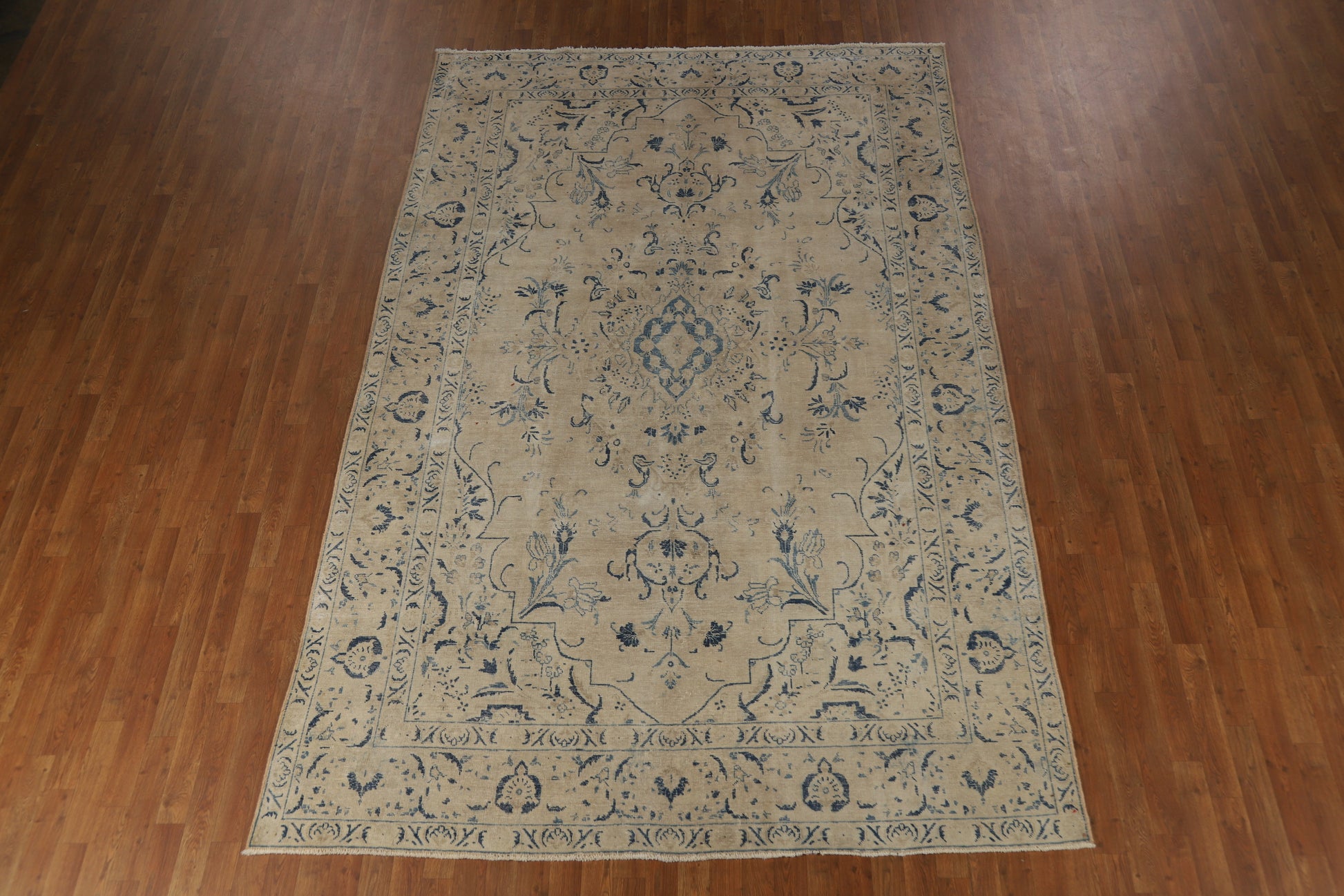 Distressed Wool Tabriz Persian Area Rug 7x11