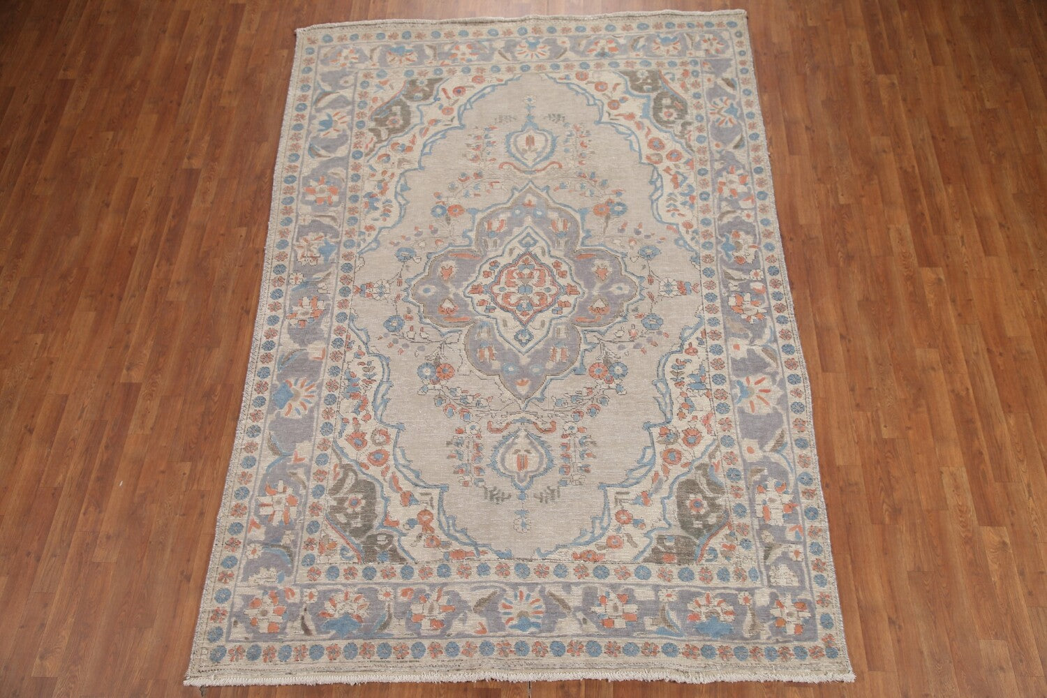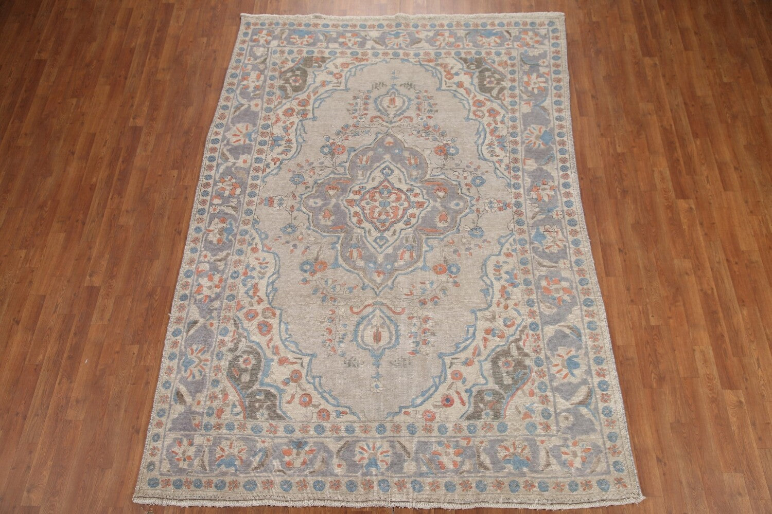 Distressed Wool Tabriz Persian Area Rug 7x9