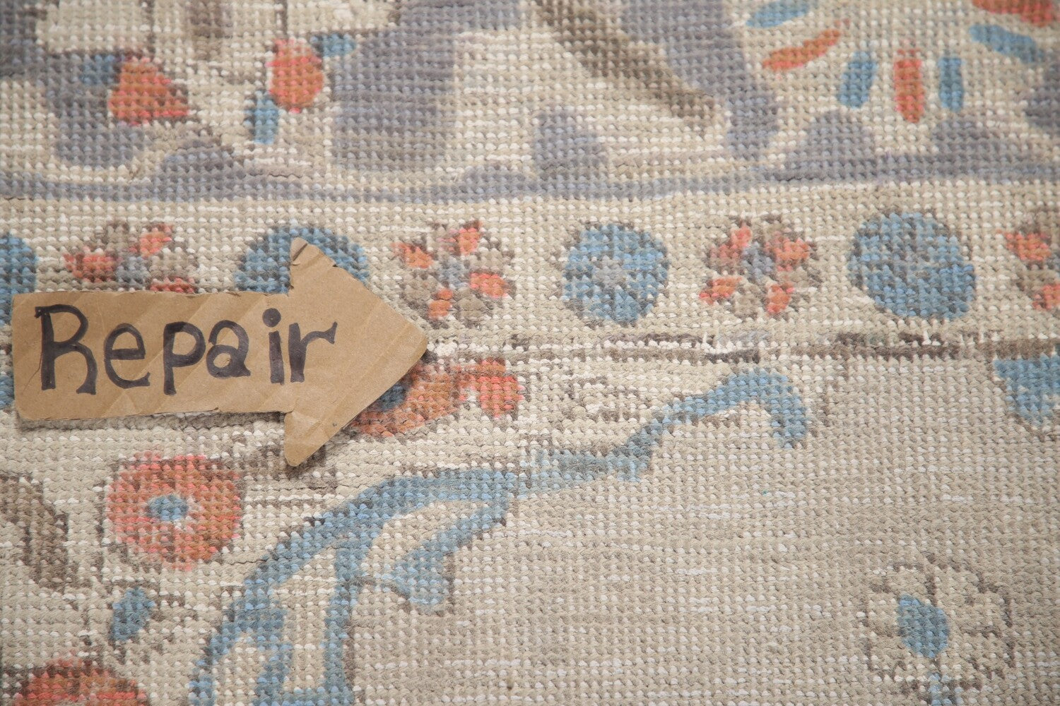 A Beautiful Genuine Persia ( Persia ) Tabriz rug is Hand Knotted by skillful weavers in Persia ( Persia ) with 100% Wool Material. This rug is in Very Good ( Evenly Low Pile-Repair) condition. dimensions are 9' 4'' X 6' 8'' in foot and 284 X 203 in centimeter. the primary color is Beige & Ivories.
