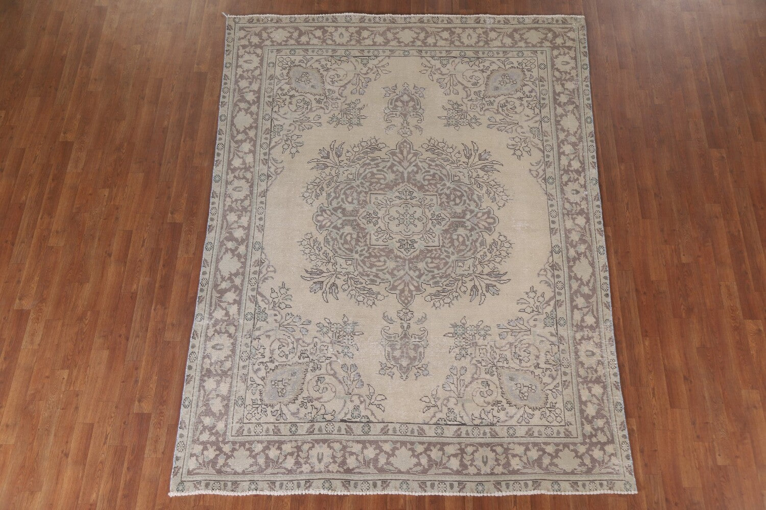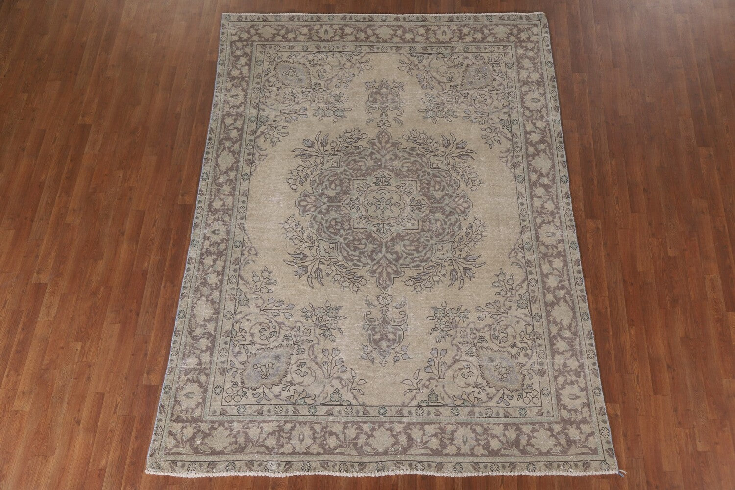 Distressed Wool Tabriz Persian Area Rug 7x9