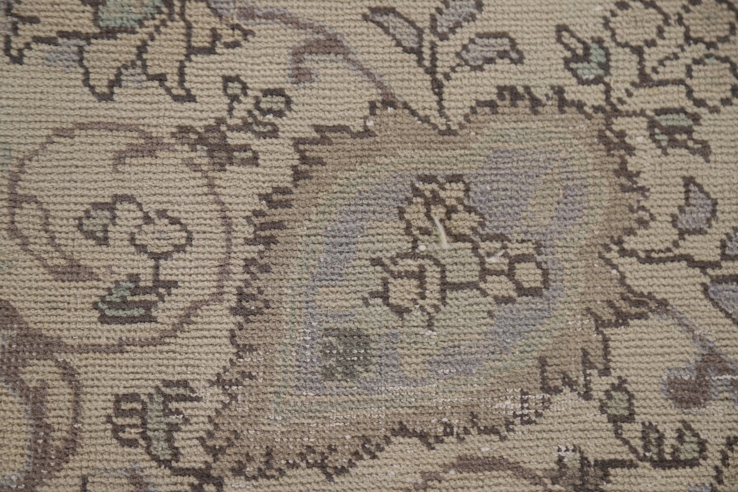 A Beautiful Genuine Persia ( Persia ) Tabriz rug is Hand Knotted by skillful weavers in Persia ( Persia ) with 100% Wool Material. This rug is in Very Good (Evenly Low Pile) condition. dimensions are 9' 2'' X 6' 9'' in foot and 279 X 206 in centimeter. the primary color is Beige & Ivories.
