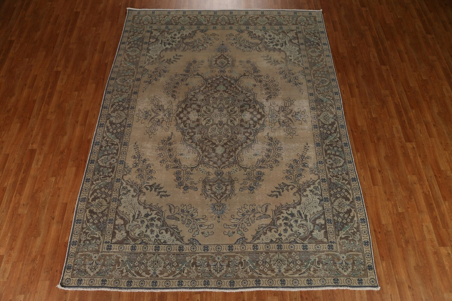 Distressed Wool Tabriz Persian Area Rug 8x11