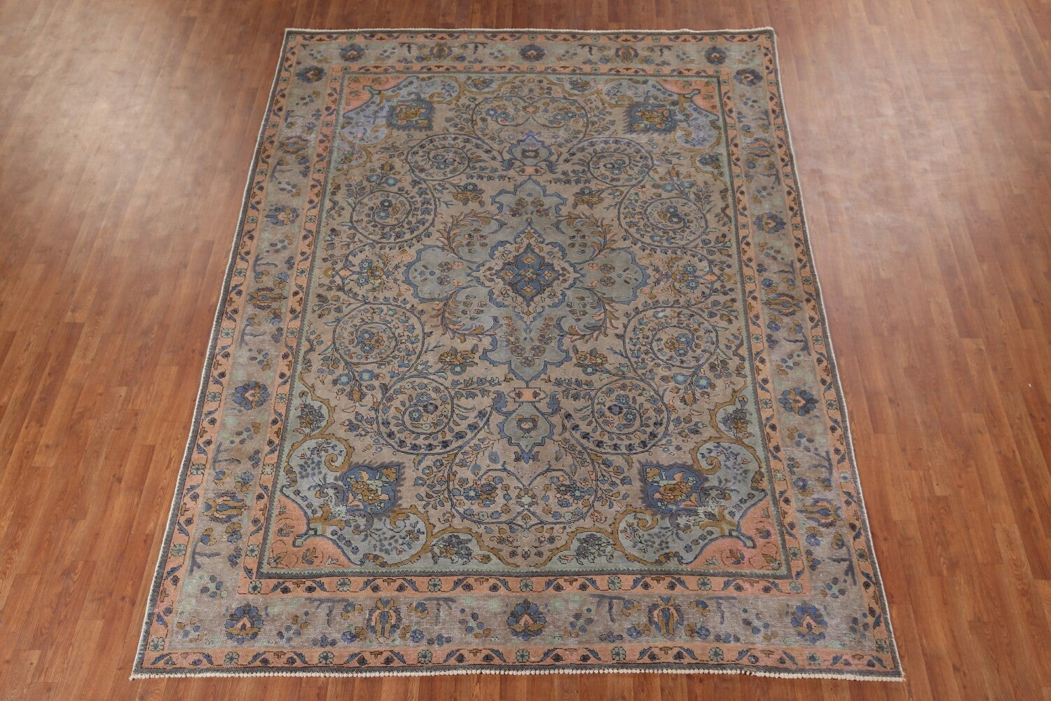 Distressed Wool Tabriz Persian Area Rug 8x11
