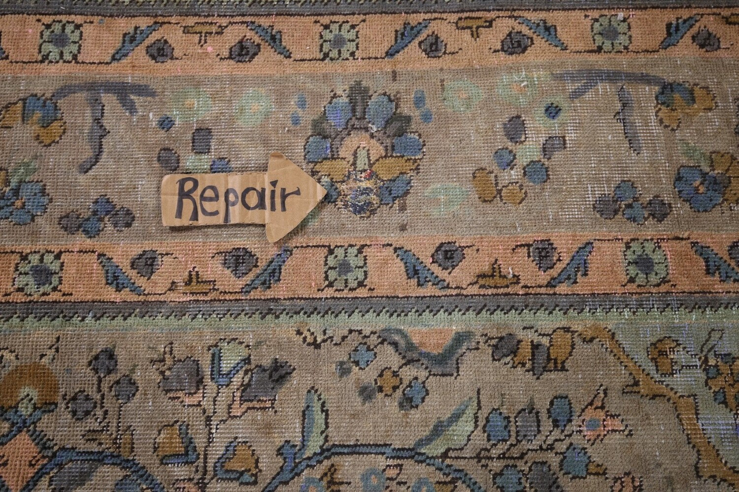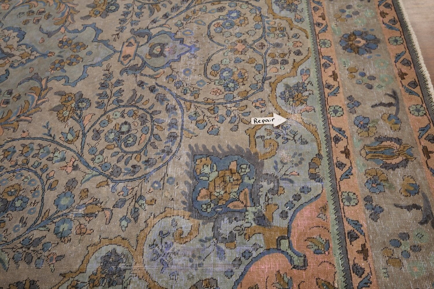A Beautiful Genuine Persia ( Persia ) Tabriz rug is Hand Knotted by skillful weavers in Persia ( Persia ) with 100% Wool Material. This rug is in Very Good ( Evenly Low Pile-Repair) condition. dimensions are 10' 9'' X 8' 0'' in foot and 328 X 244 in centimeter. the primary color is Greys & Charcoal.