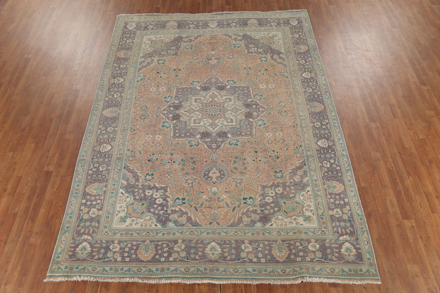 Distressed Wool Tabriz Persian Area Rug 8x11