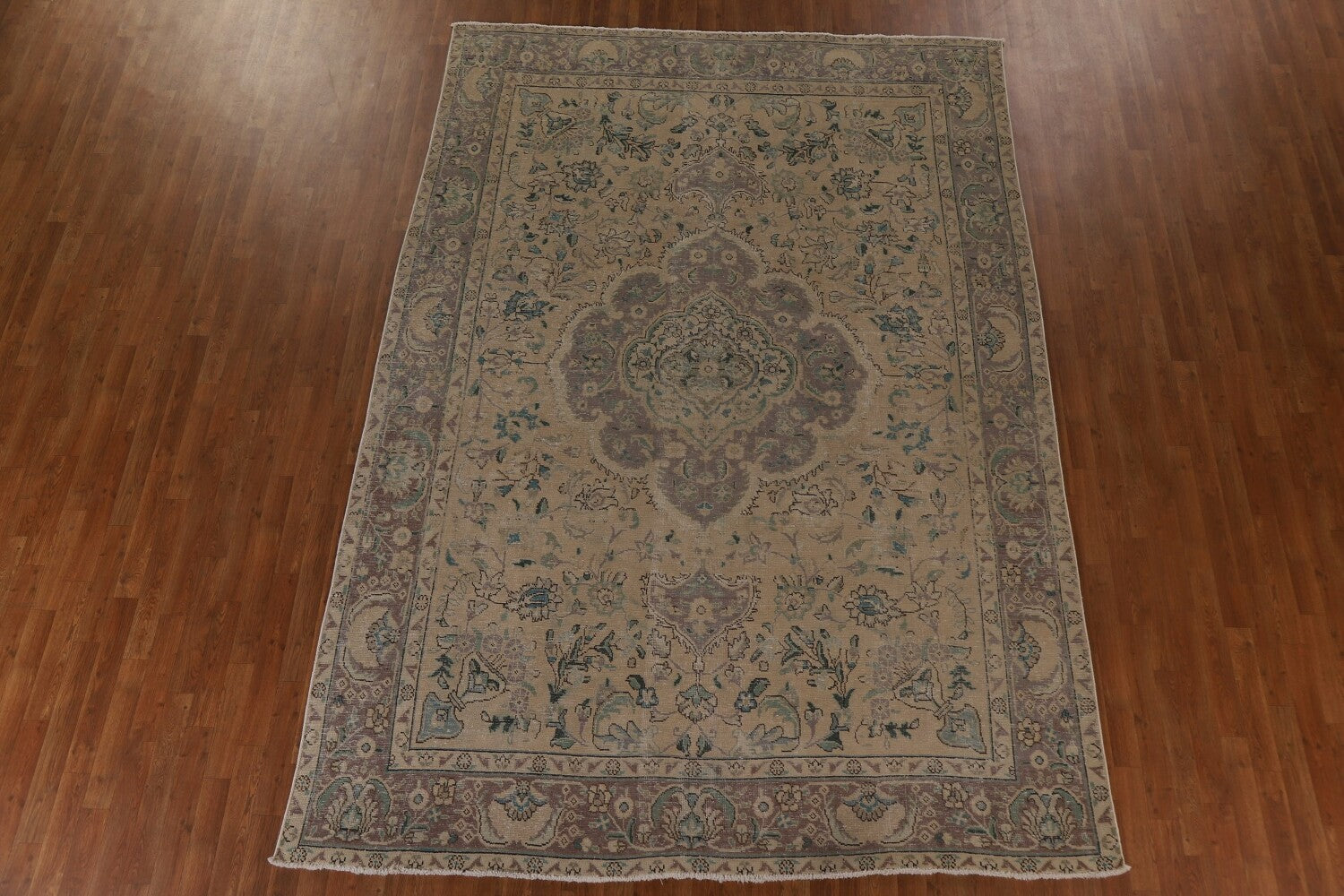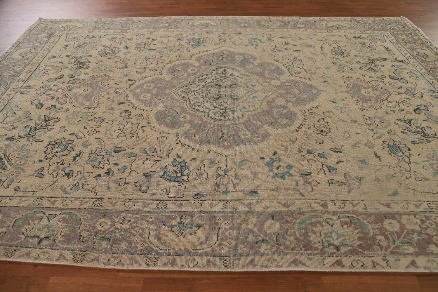 Distressed Wool Tabriz Persian Area Rug 8x11