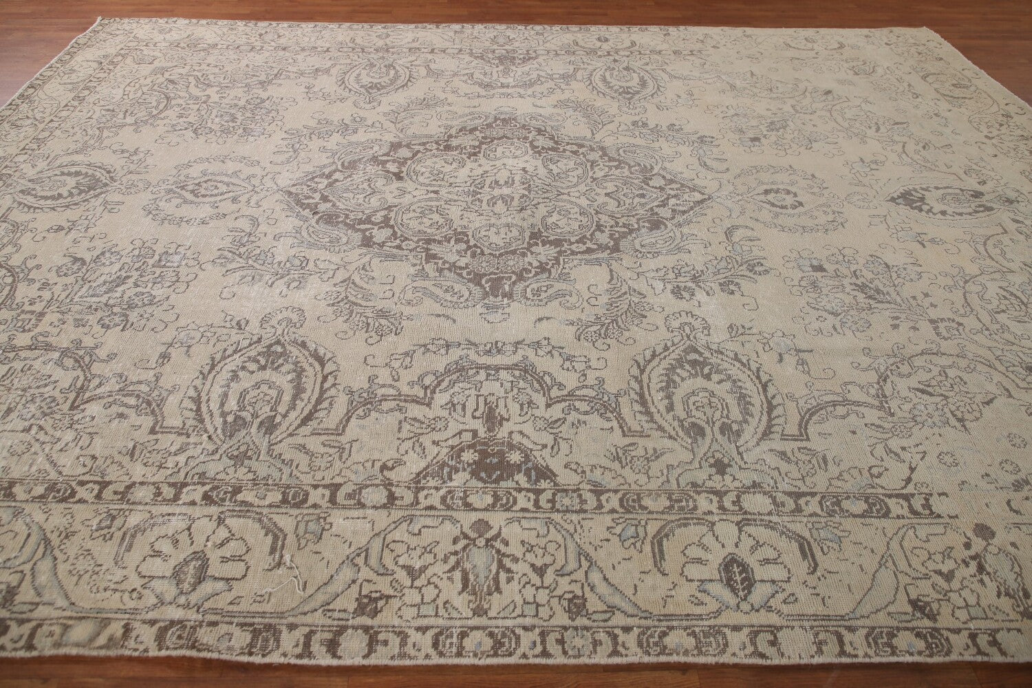 Distressed Wool Tabriz Persian Area Rug 9x12