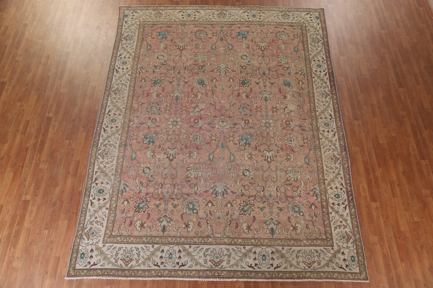 Distressed Wool Tabriz Persian Area Rug 9x12
