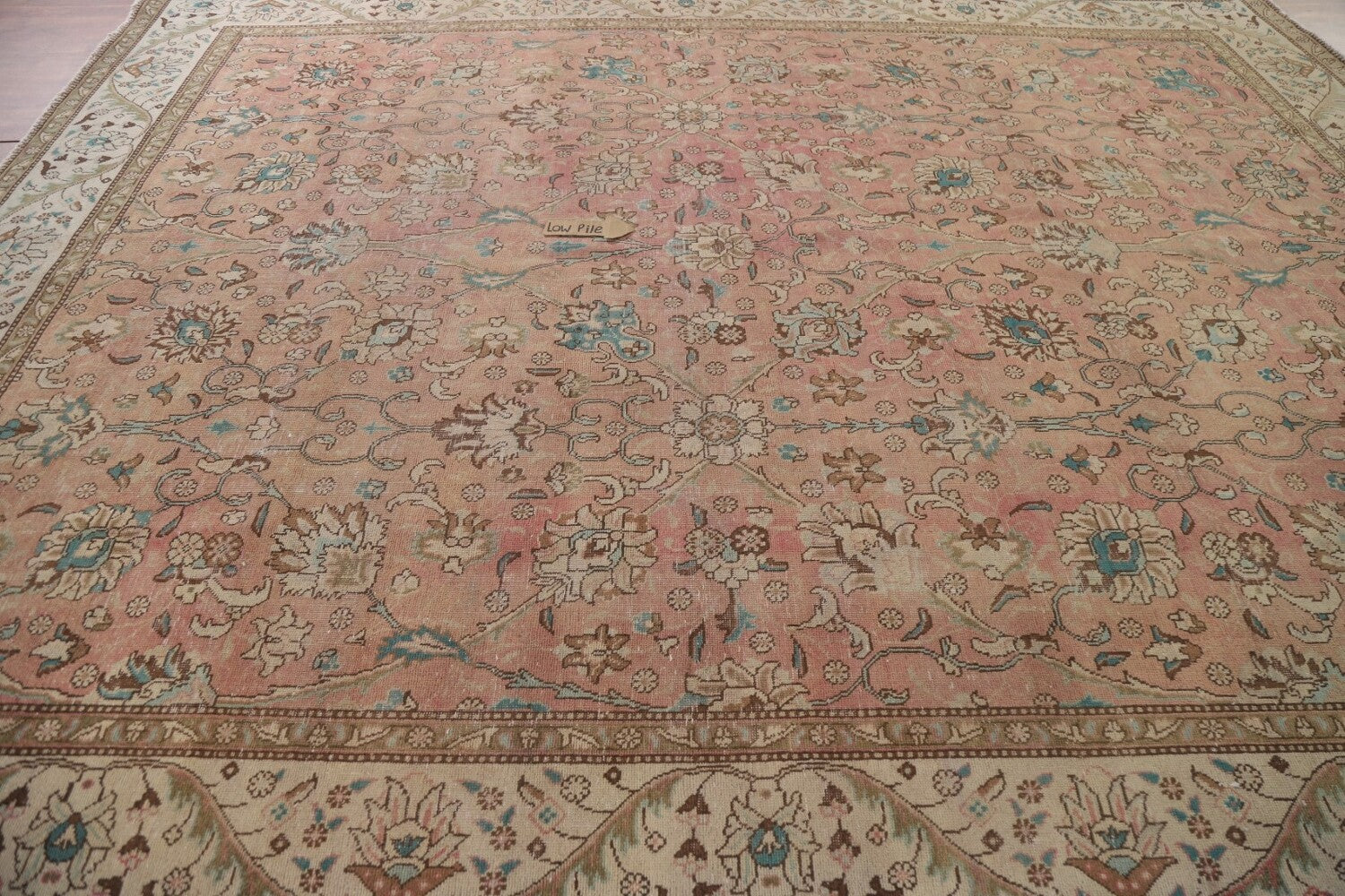 A Beautiful Genuine Persia ( Persia ) Tabriz rug is Hand Knotted by skillful weavers in Persia ( Persia ) with 100% Wool Material. This rug is in Very Good (Low Pile) condition. dimensions are 11' 11'' X 9' 2'' in foot and 363 X 279 in centimeter. the primary color is Pink.