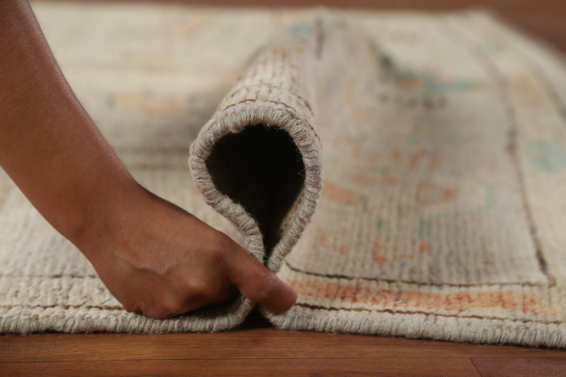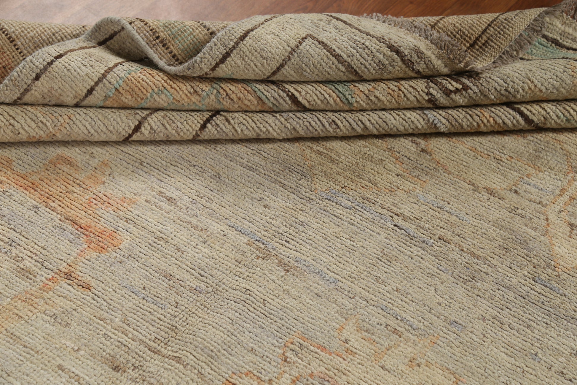 A Beautiful Genuine Turkey Oushak rug is Hand Knotted by skillful weavers in Turkey with 100% Wool Material. This rug is in New, First Quality condition. dimensions are 9' 8'' X 6' 9'' in foot and 295 X 206 in centimeter. the primary color is Beige & Ivories.
