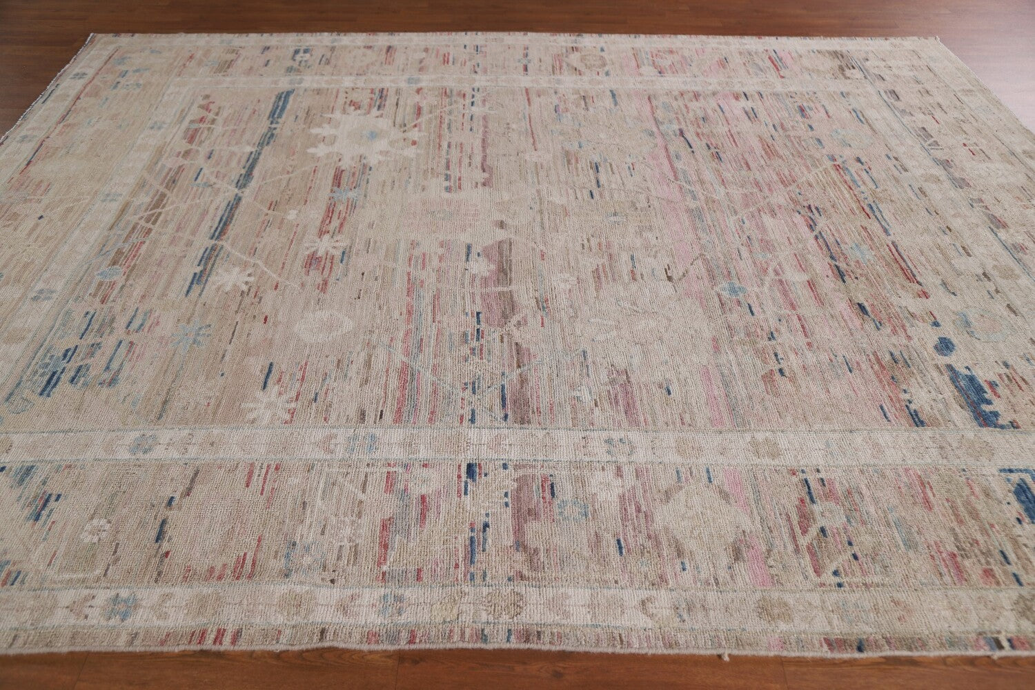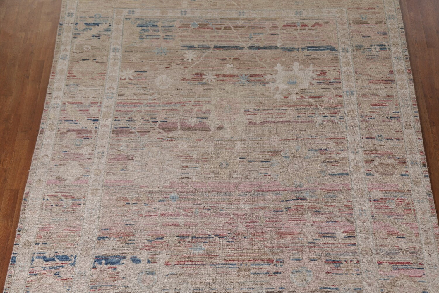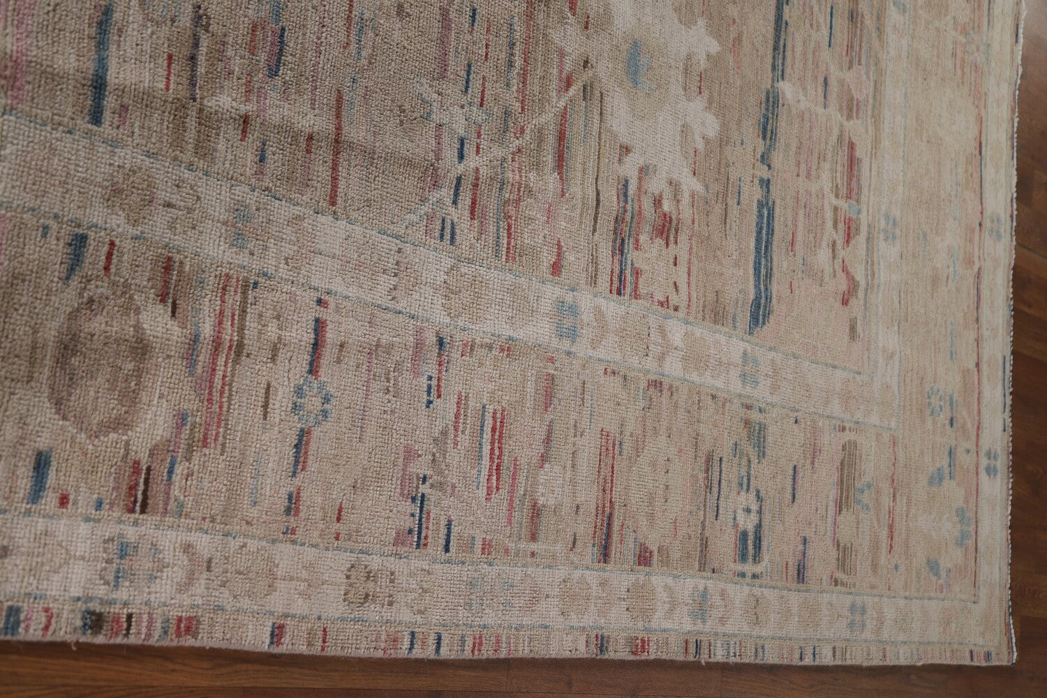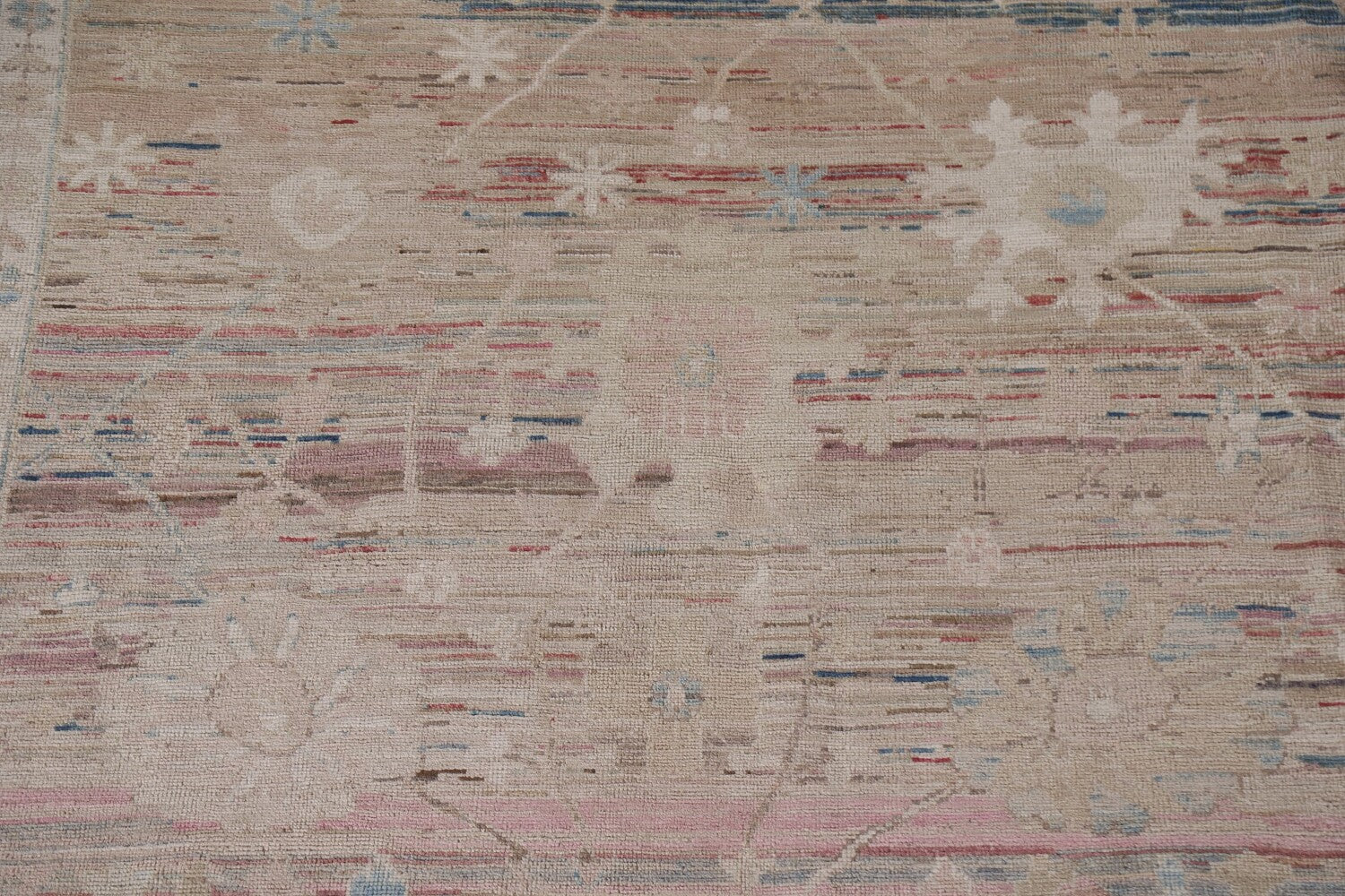 A Beautiful Genuine Turkey Oushak rug is Hand Knotted by skillful weavers in Turkey with 100% Wool Material. This rug is in New, First Quality condition. dimensions are 9' 9'' X 8' 0'' in foot and 297 X 244 in centimeter. the primary color is Beige & Ivories.