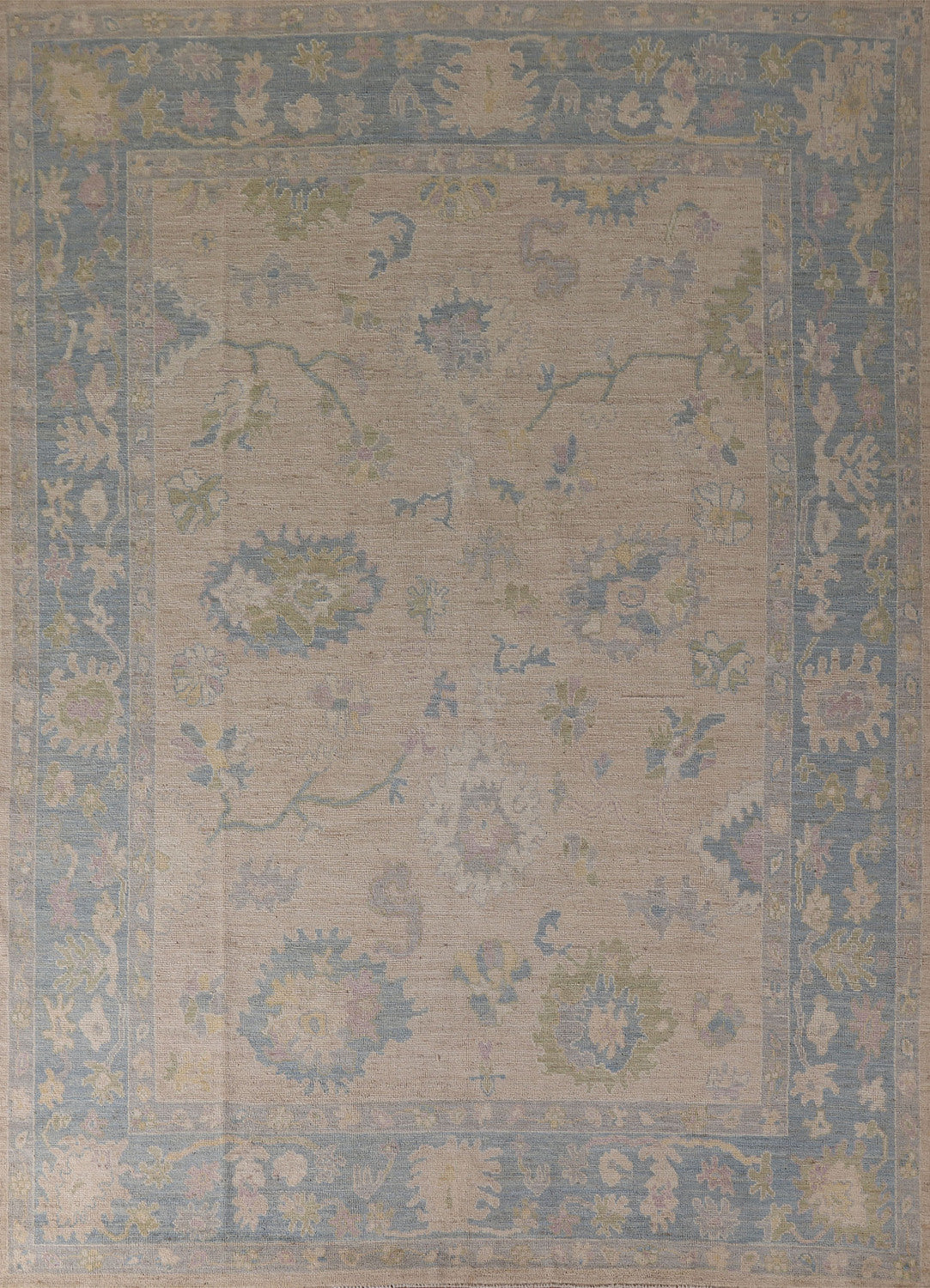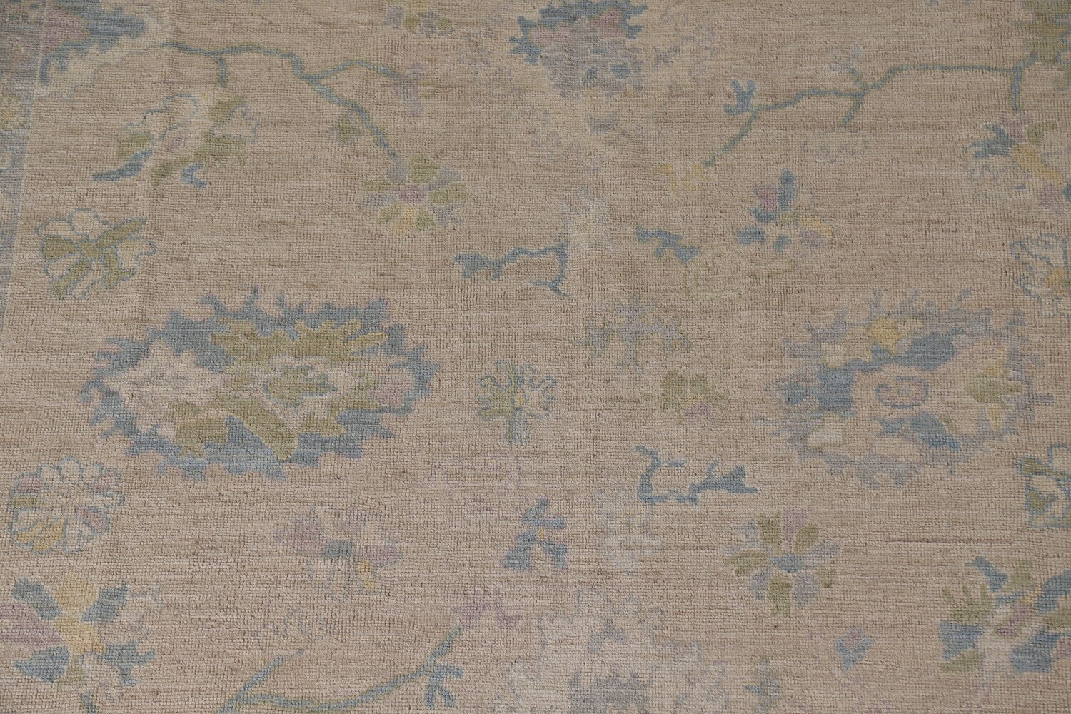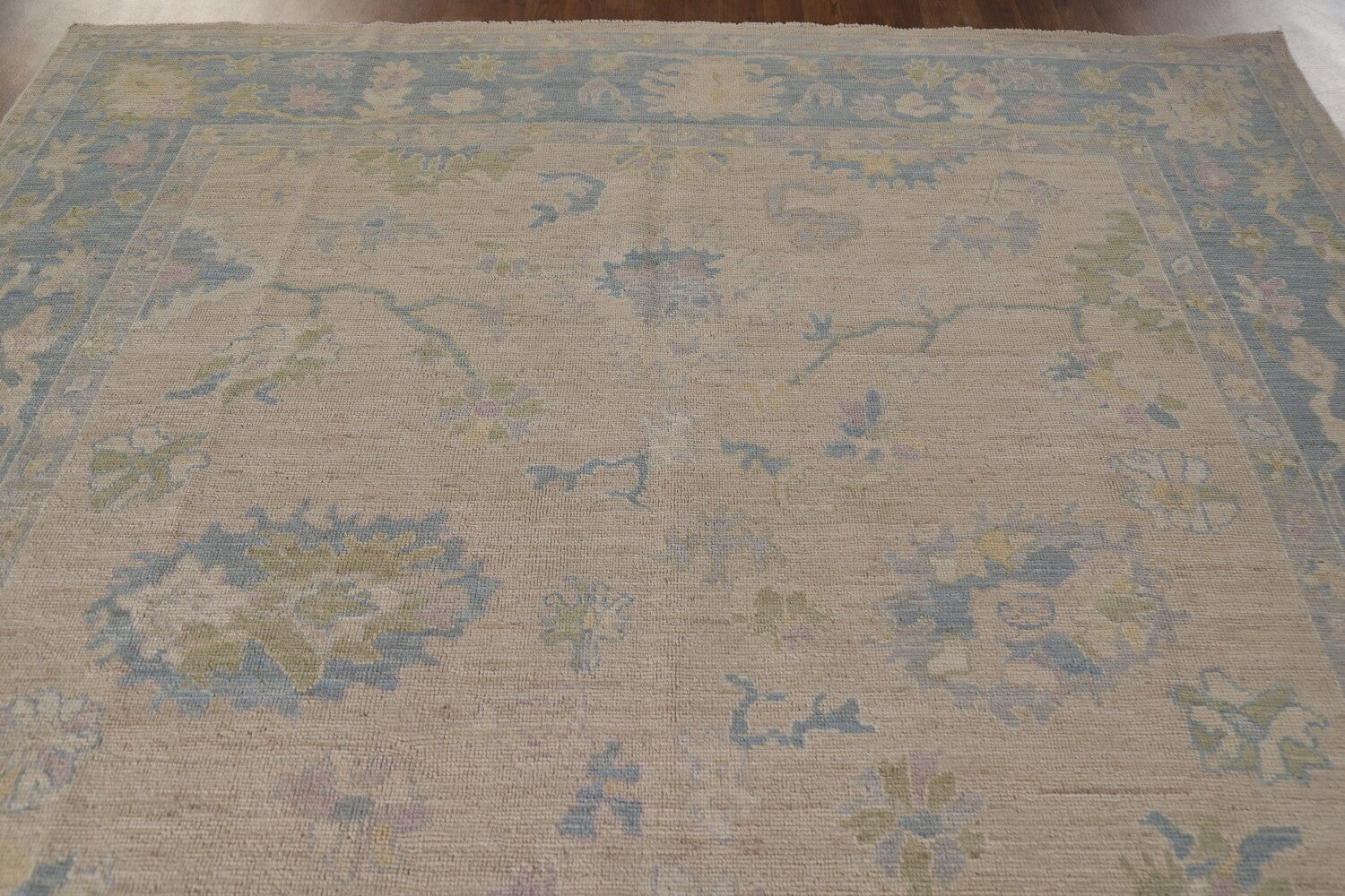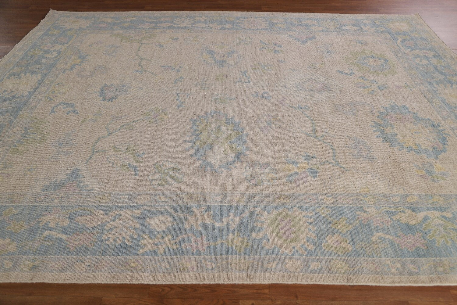 A Beautiful Genuine Turkey Oushak rug is Hand Knotted by skillful weavers in Turkey with 100% Wool Material. This rug is in New, First Quality condition. dimensions are 9' 11'' X 7' 11'' in foot and 302 X 241 in centimeter. the primary color is Beige & Ivories.