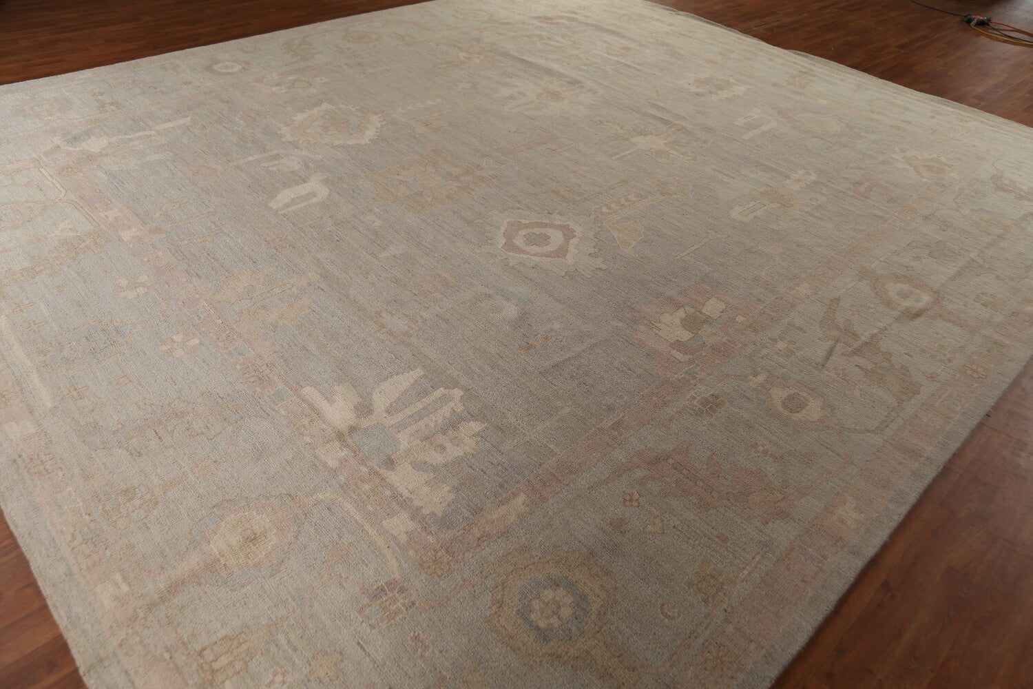 A Beautiful Genuine Turkey Oushak rug is Hand Knotted by skillful weavers in Turkey with 100% Wool Material. This rug is in New, First Quality condition. dimensions are 14' 3'' X 12' 5'' in foot and 434 X 378 in centimeter. the primary color is Beige & Ivories.