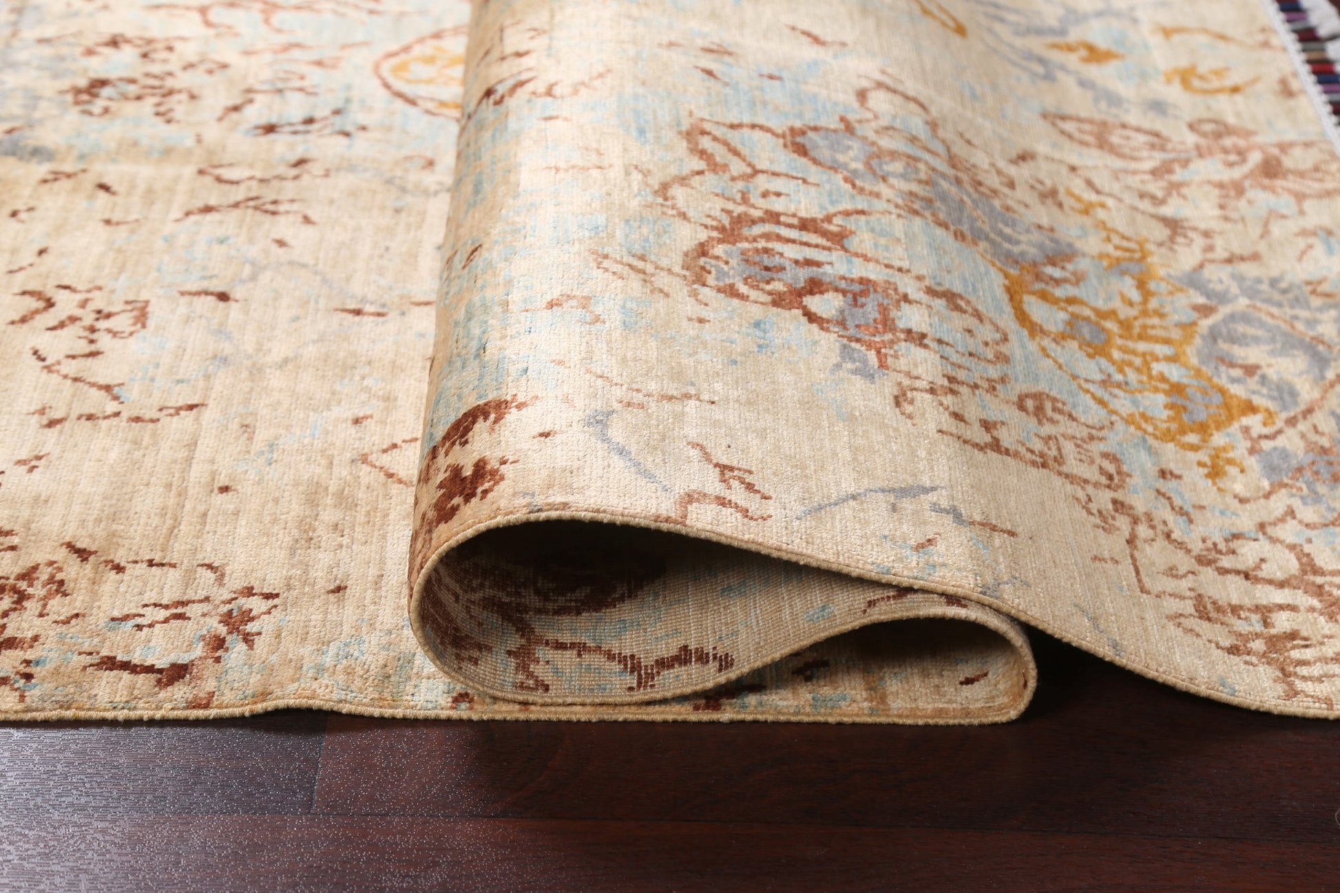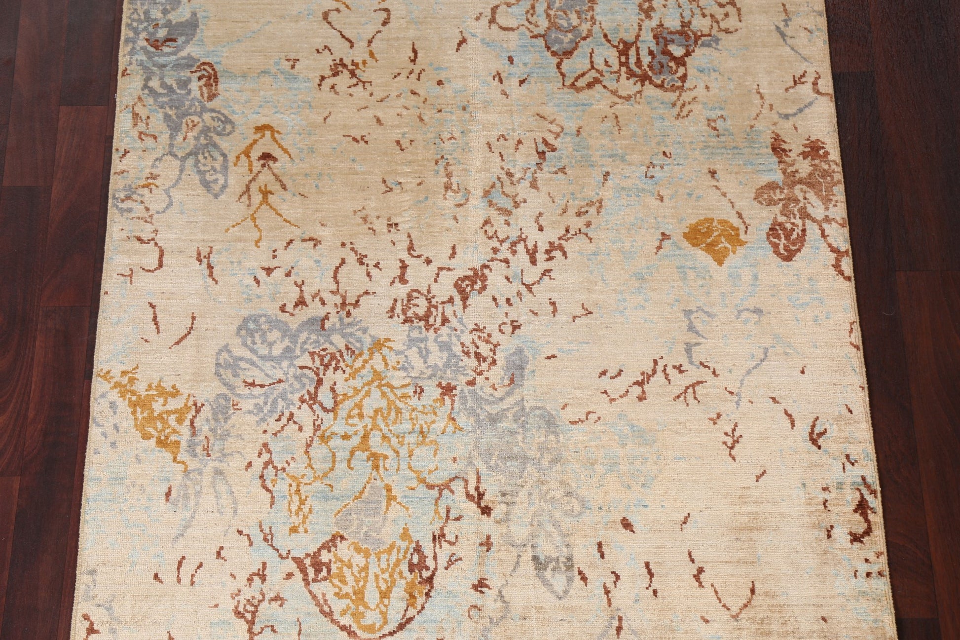 A Beautiful Genuine Pakistan Abstract rug is Hand Knotted by skillful weavers in Pakistan with 100% Wool Material. This rug is in New, First Quality condition. dimensions are 6' 0'' X 4' 1'' in foot and  183 X 124 in centimeter. the primary color is Beige & Ivories.