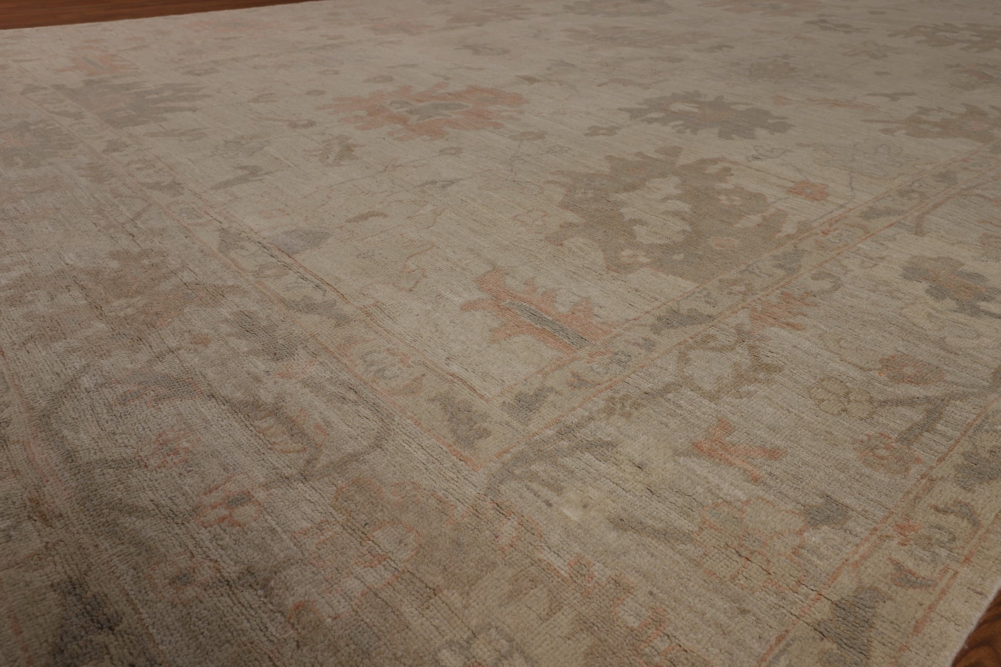 A Beautiful Genuine Turkey Oushak rug is Hand Knotted by skillful weavers in Turkey with 100% Wool Material. This rug is in New, First Quality condition. dimensions are 13' 5'' X 9' 7'' in foot and 409 X 292 in centimeter. the primary color is Beige & Ivories.