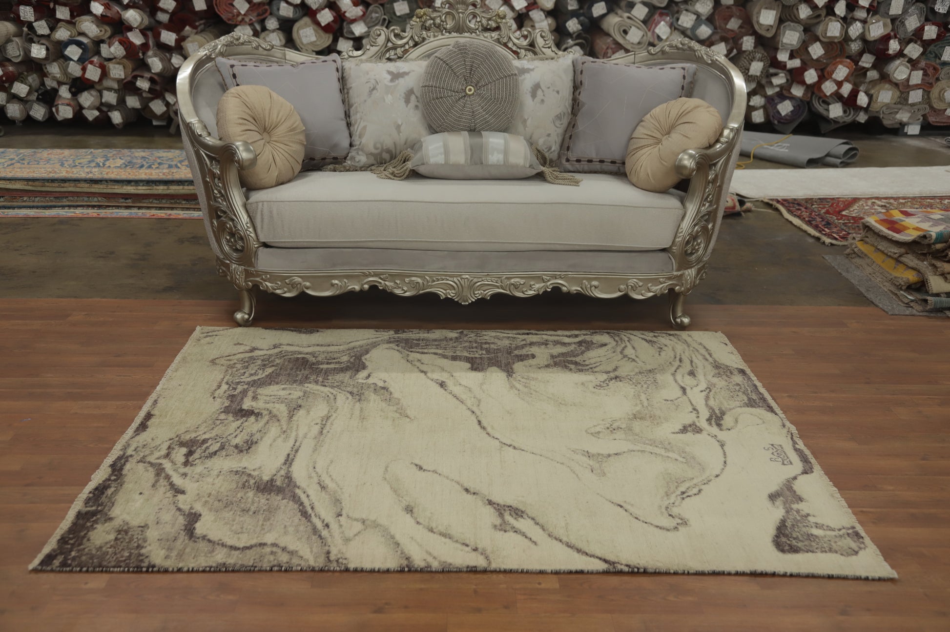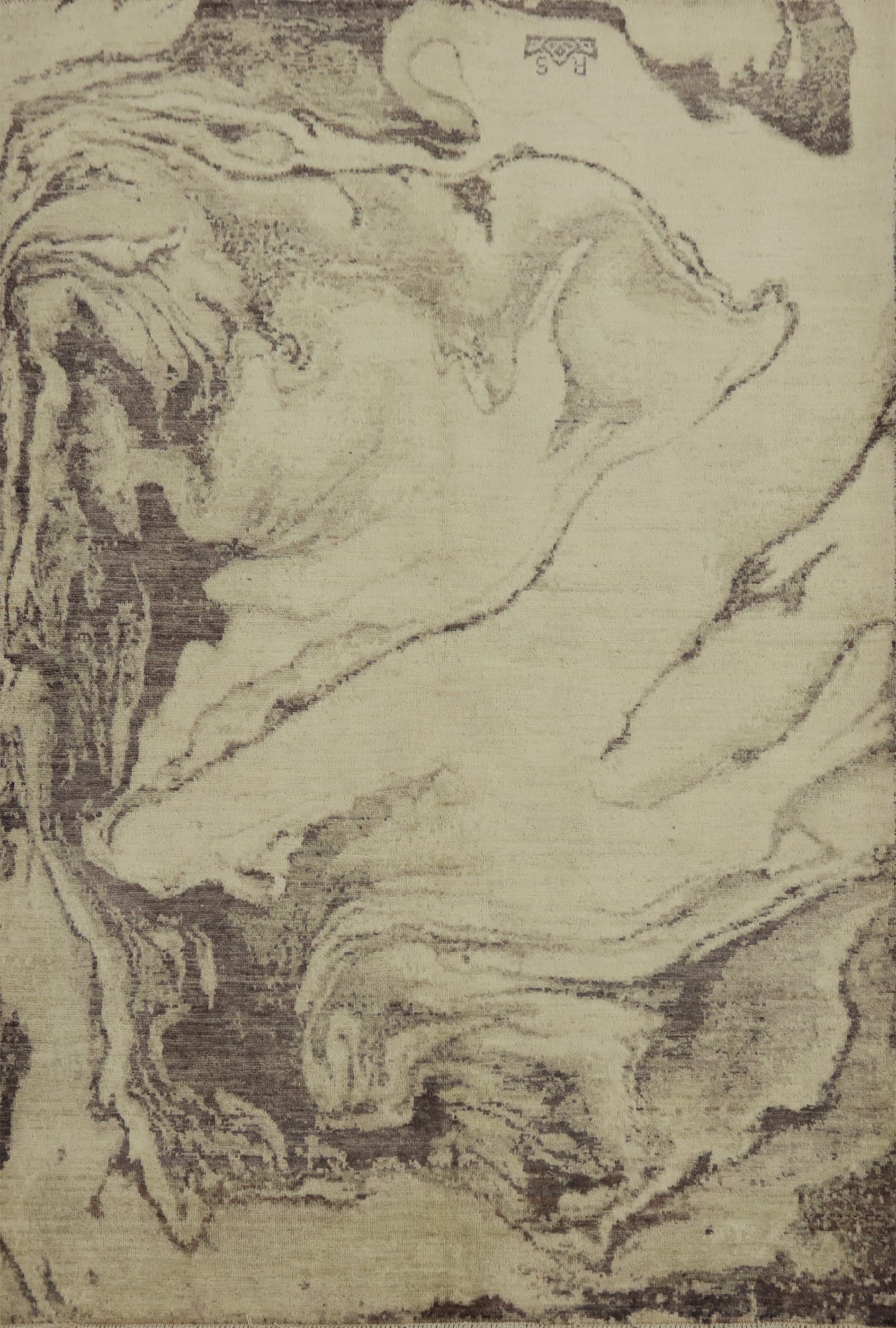 A Beautiful Genuine Pakistan Modern rug is Hand Knotted by skillful weavers in Pakistan with 100% Wool Material. This rug is in New, First Quality condition. dimensions are 6' 4'' X 4' 9'' in foot and 193 X 145 in centimeter. the primary color is Beige & Ivories.