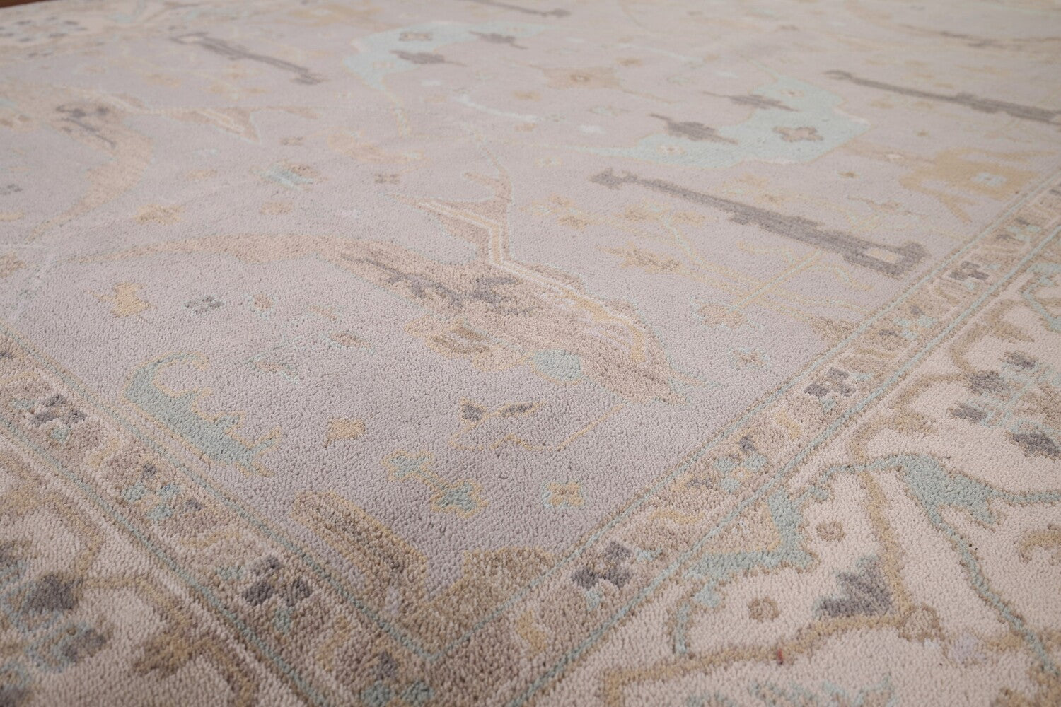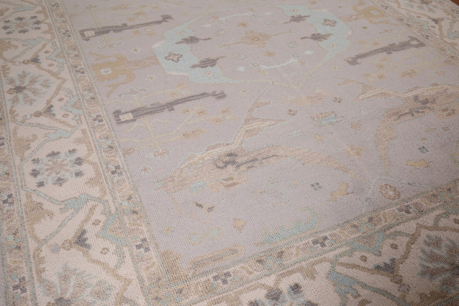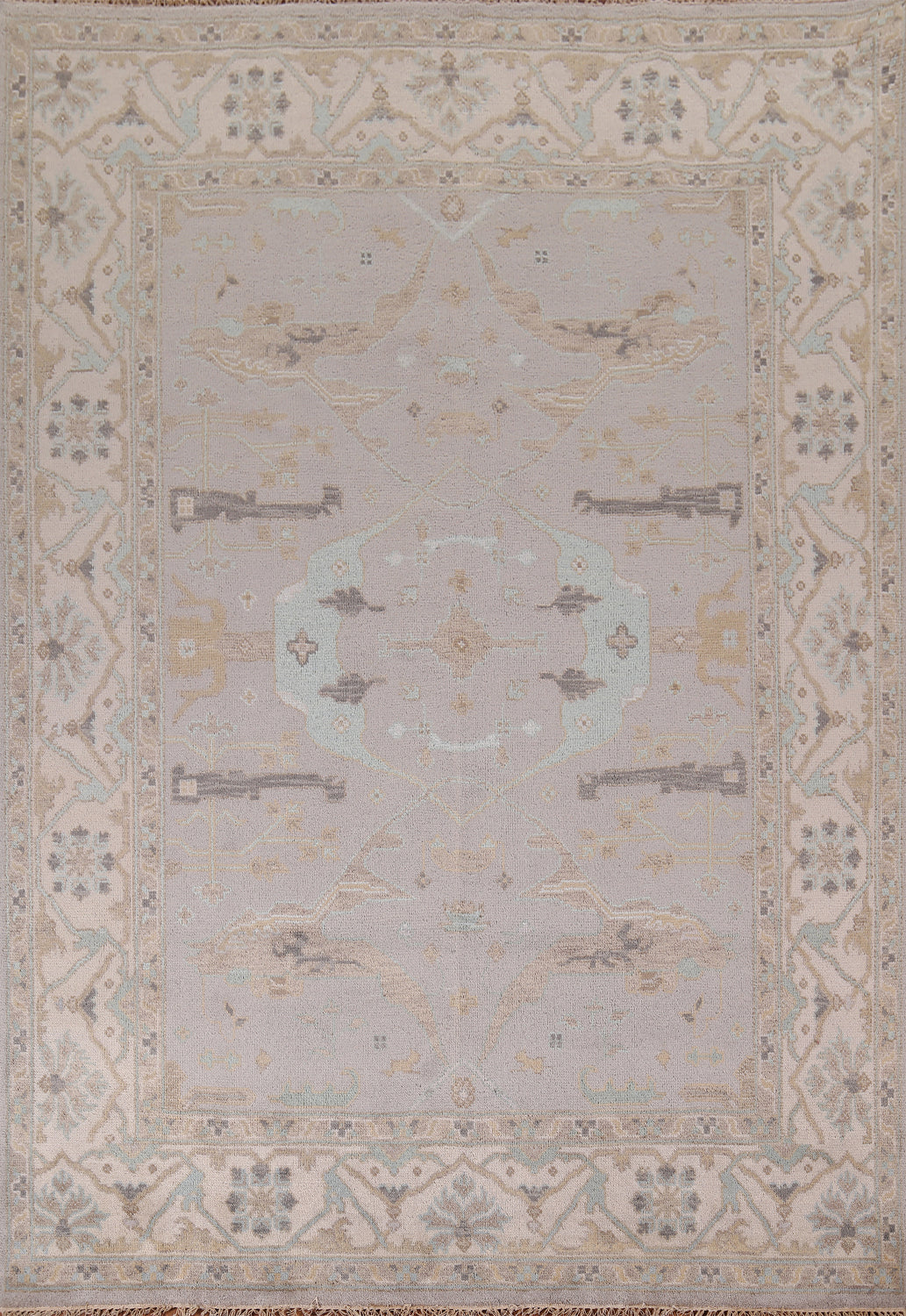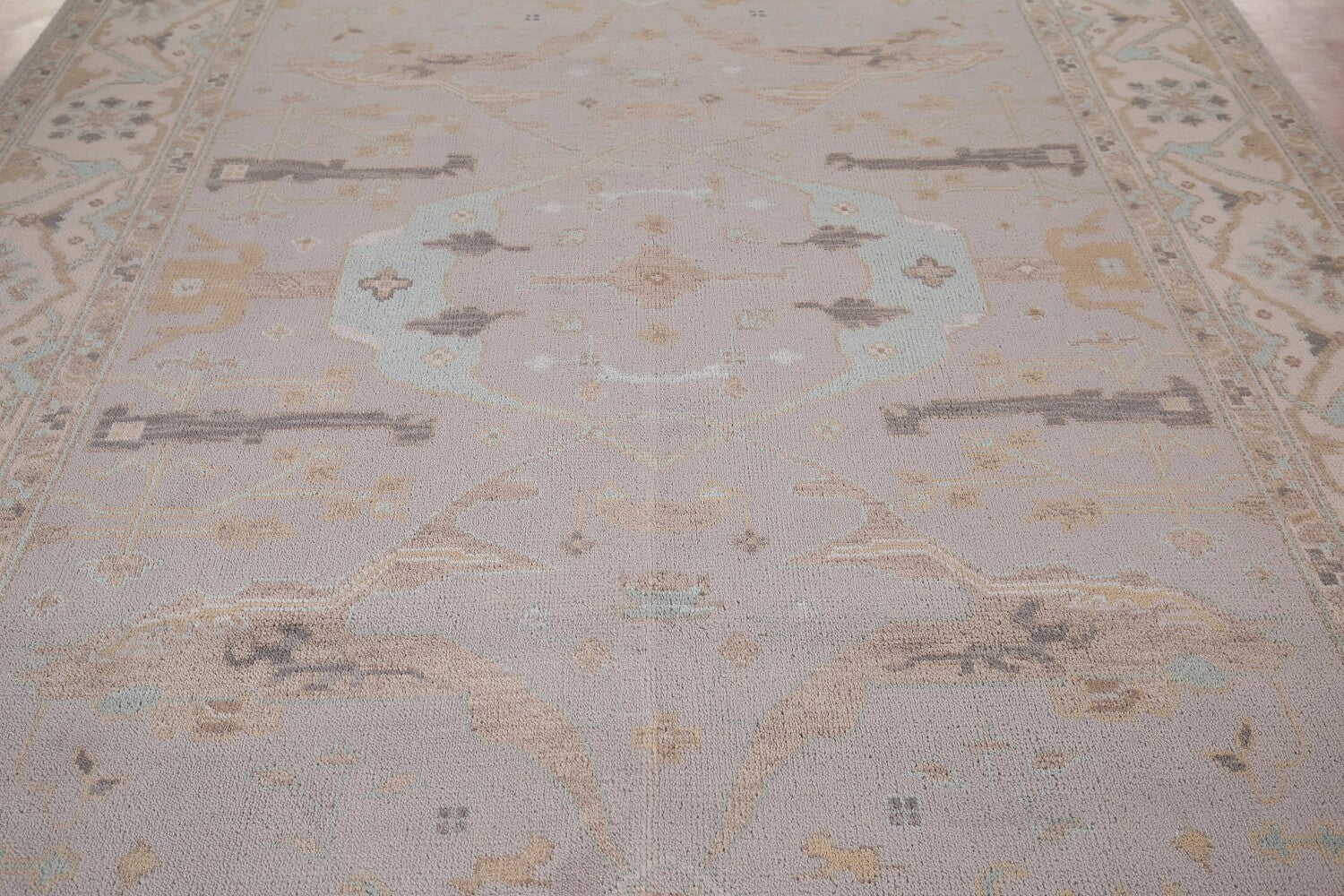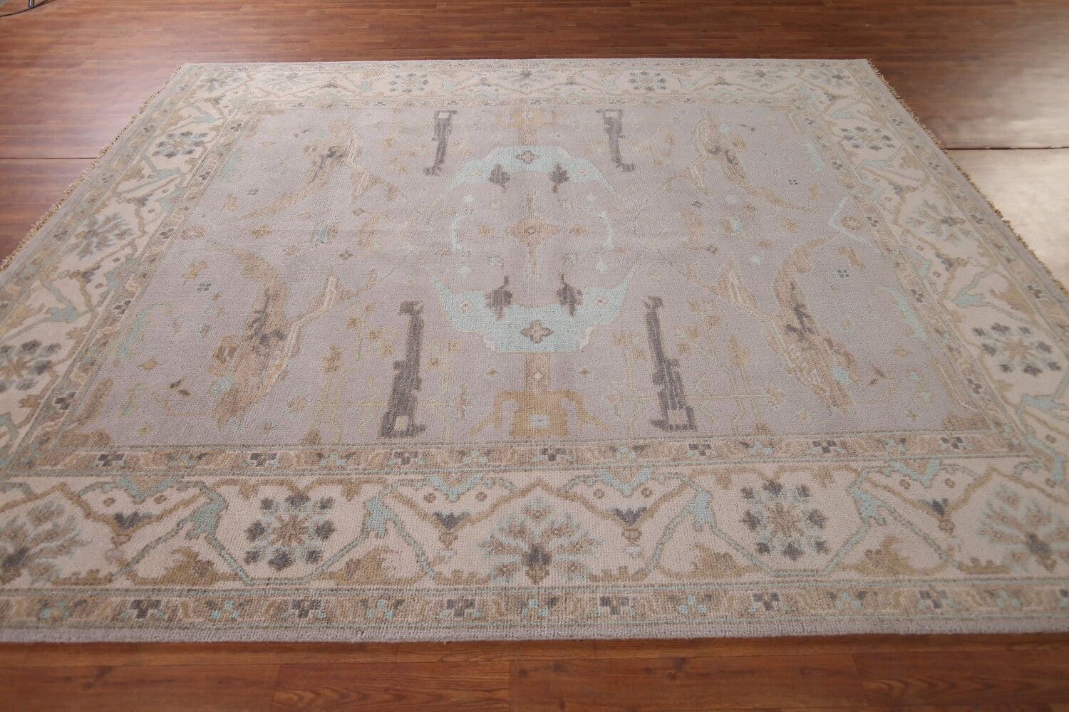 A Beautiful Genuine India Oushak rug is Hand Knotted by skillful weavers in India with 100% Wool Material. This rug is in New, First Quality condition. dimensions are 9' 9'' X 8' 0'' in foot and 297 X 244 in centimeter. the primary color is Greys & Charcoal.