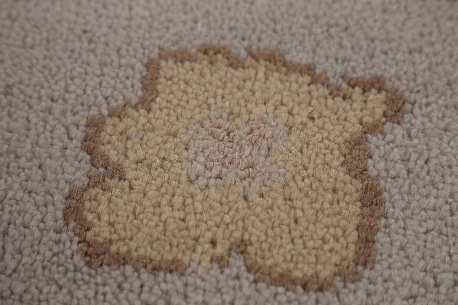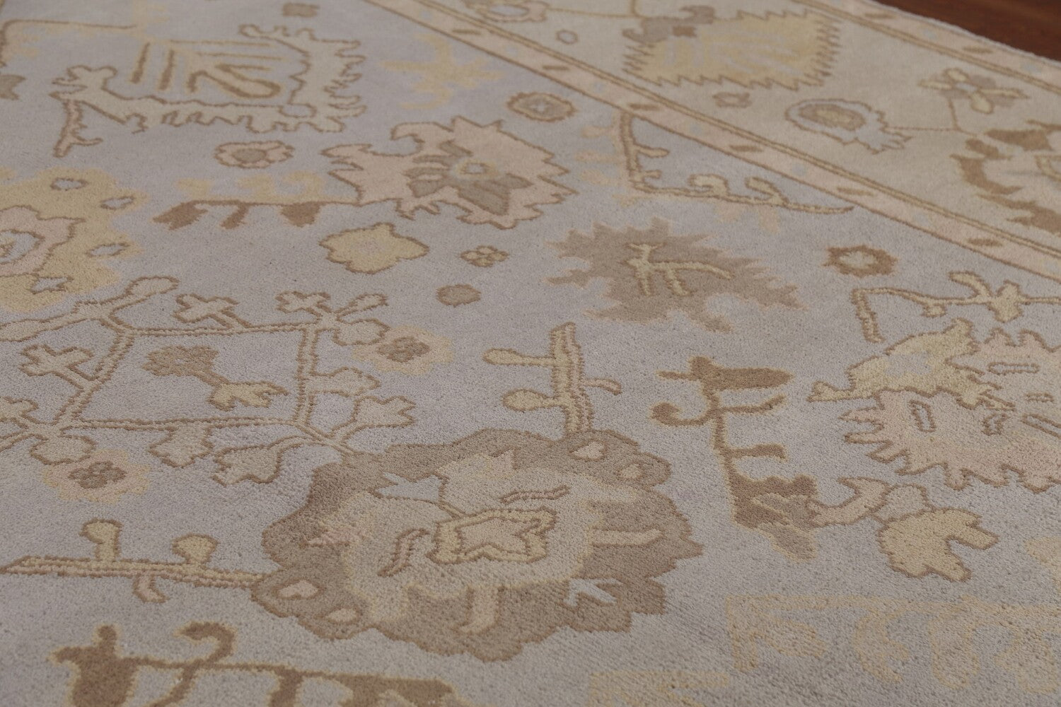 A Beautiful Genuine India Oushak rug is Hand Knotted by skillful weavers in India with 100% Wool Material. This rug is in New, First Quality condition. dimensions are 11' 10'' X 9' 1'' in foot and 361 X 277 in centimeter. the primary color is Greys & Charcoal.