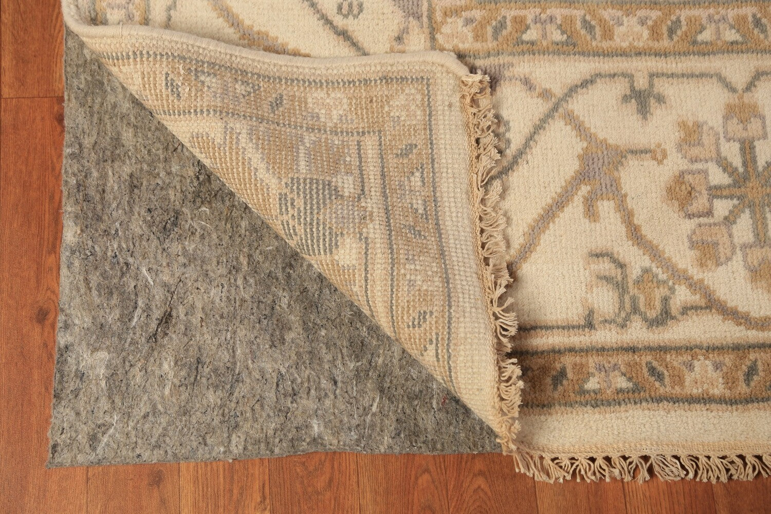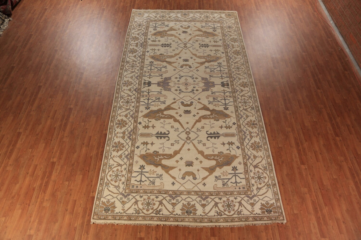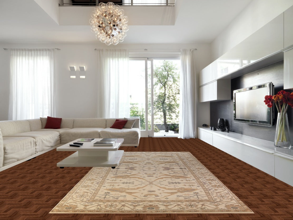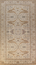 A Beautiful Genuine India Oushak rug is Hand Knotted by skillful weavers in India with 100% Wool Material. This rug is in New, First Quality condition. dimensions are 15' 8'' X 7' 11'' in foot and 478 X 241 in centimeter. the primary color is Beige & Ivories.