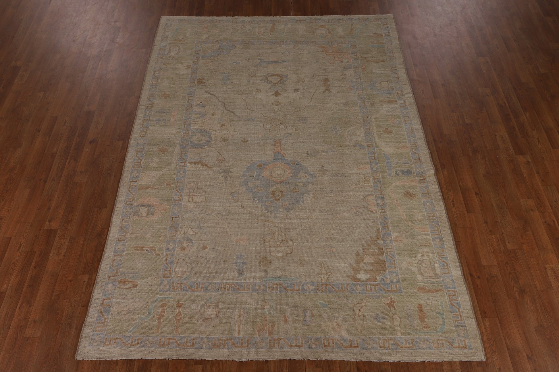 Earth Tone Wool Oushak Turkish Area Rug 7x10