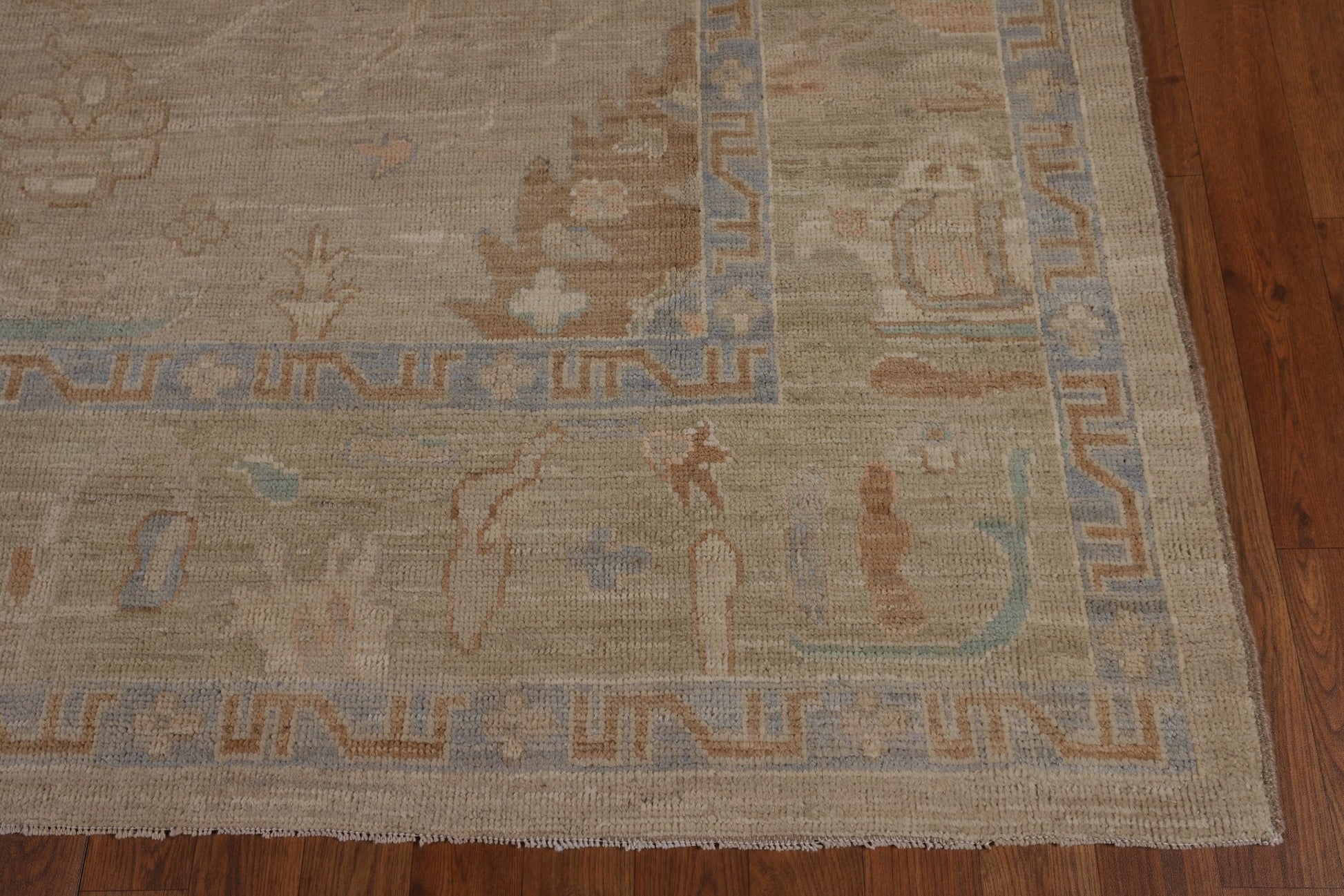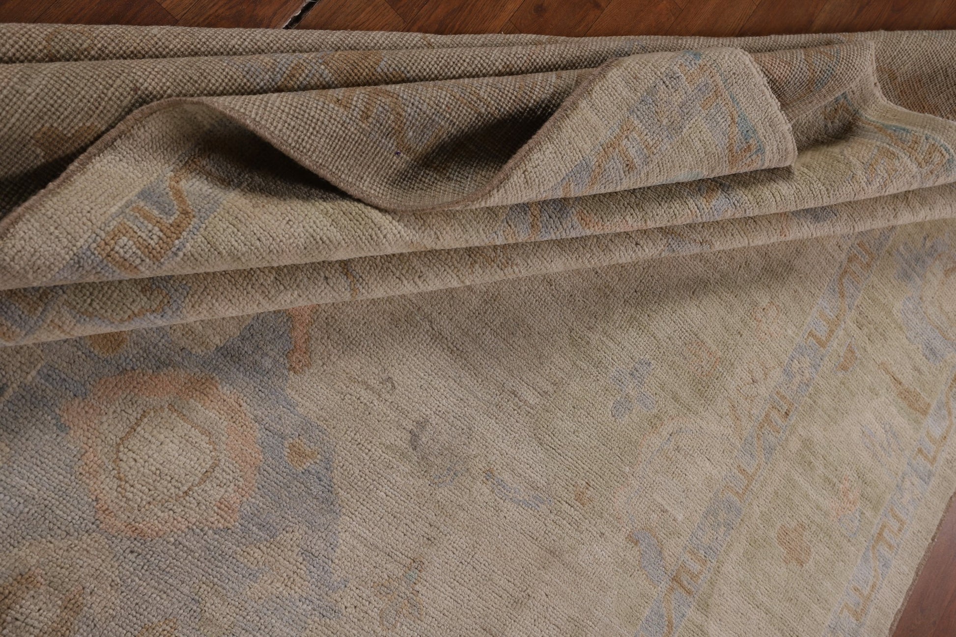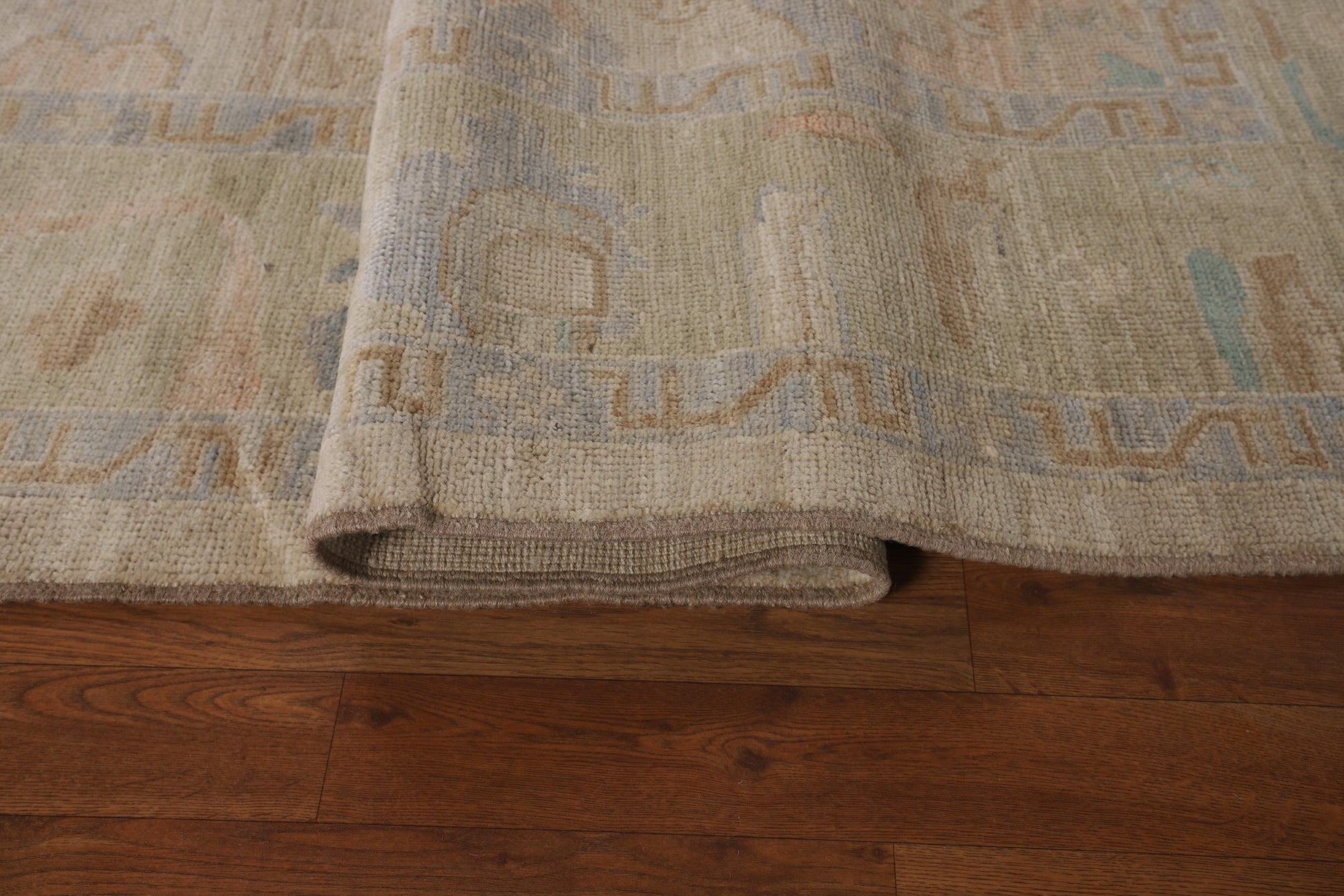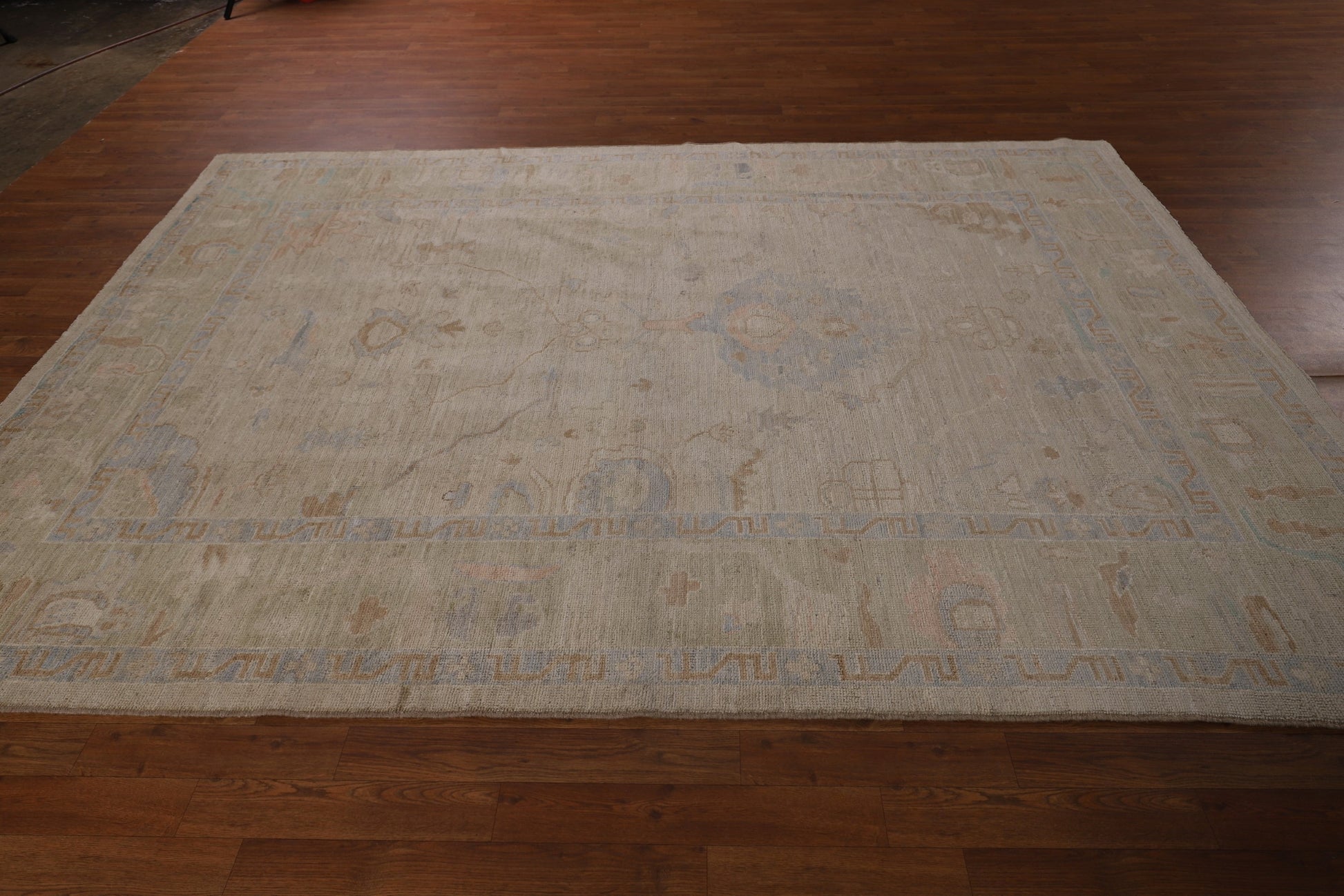 A Beautiful Genuine Turkey Oushak rug is Hand Knotted by skillful weavers in Turkey with 100% Wool Material. This rug is in New, First Quality condition. dimensions are 9' 6'' X 6' 7'' in foot and 290 X 201 in centimeter. the primary color is Beige & Ivories.