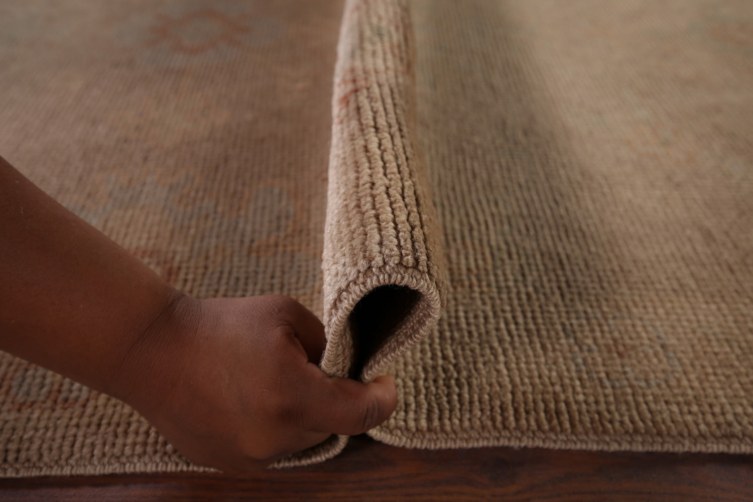 A Beautiful Genuine Turkey Oushak rug is Hand Knotted by skillful weavers in Turkey with 100% Wool Material. This rug is in New, First Quality condition. dimensions are 11' 5'' X 3' 0'' in foot and 348 X 91 in centimeter. the primary color is Beige & Ivories.