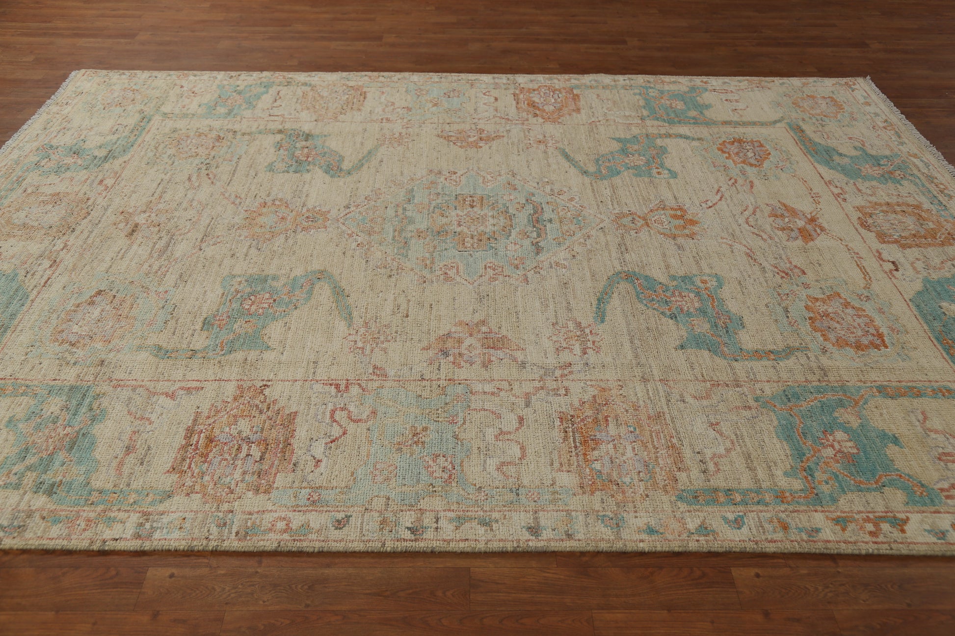 Earth Tone Wool Oushak Vegetable Dye Area Rug 7x10