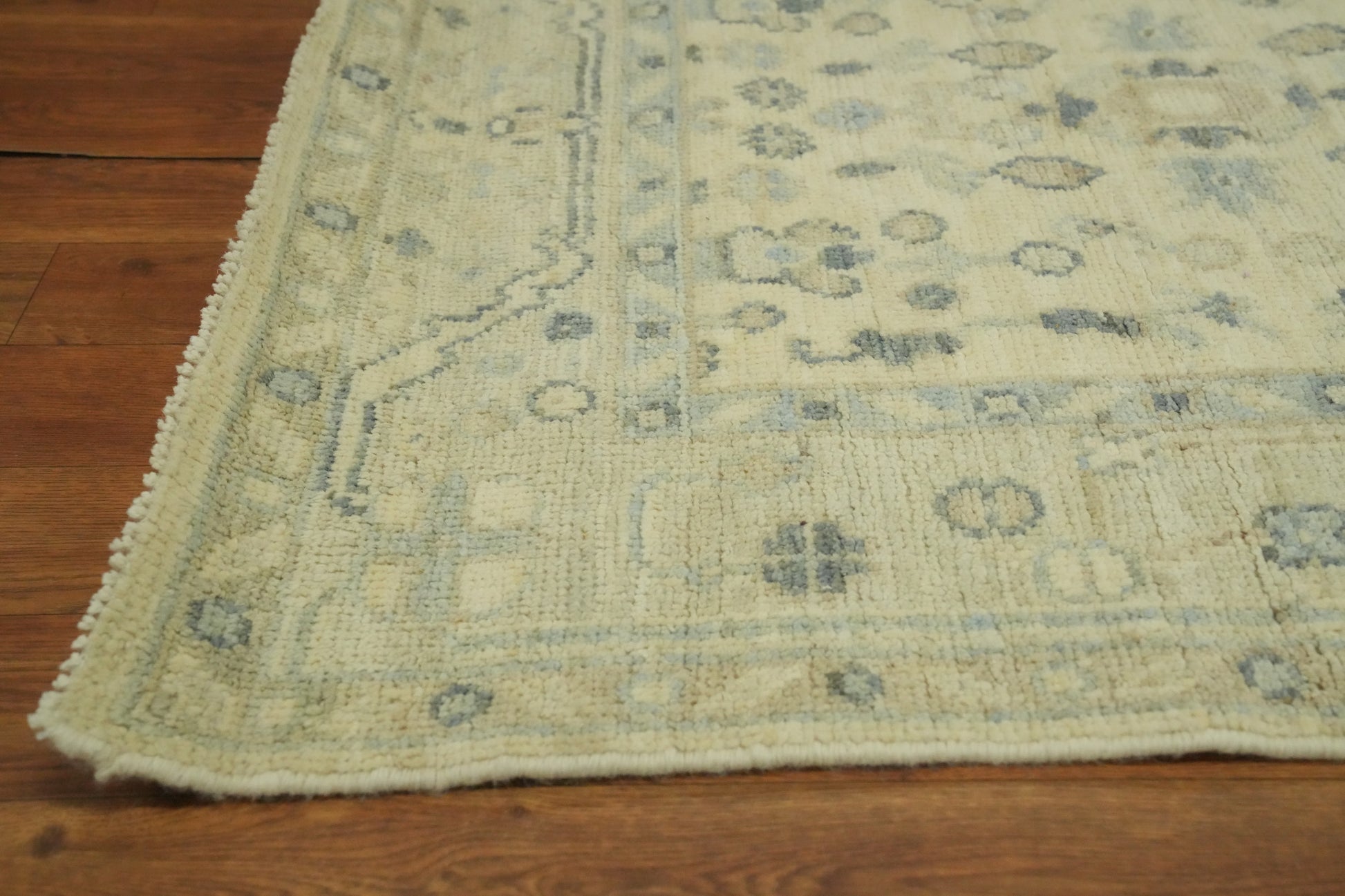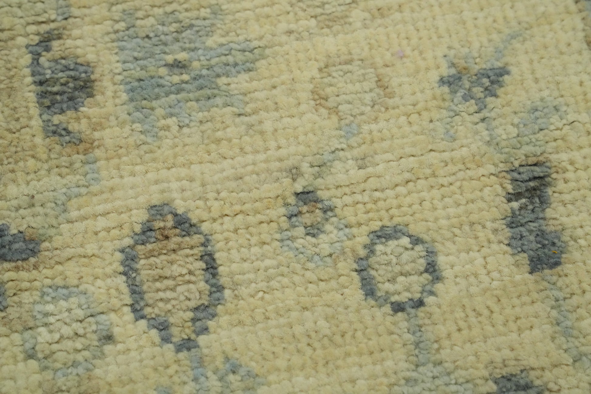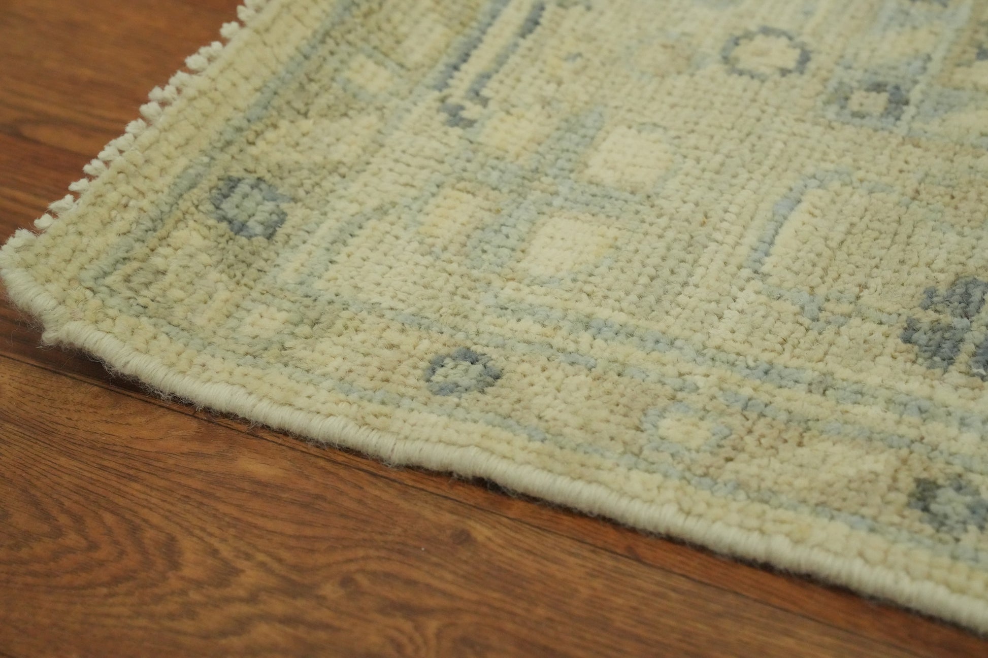 A Beautiful Genuine Turkey Oushak rug is Hand Knotted by skillful weavers in Turkey with 100% Wool Material. This rug is in New, First Quality condition. dimensions are 9' 8'' X 2' 11'' in foot and 295 X 89 in centimeter. the primary color is Beige & Ivories.