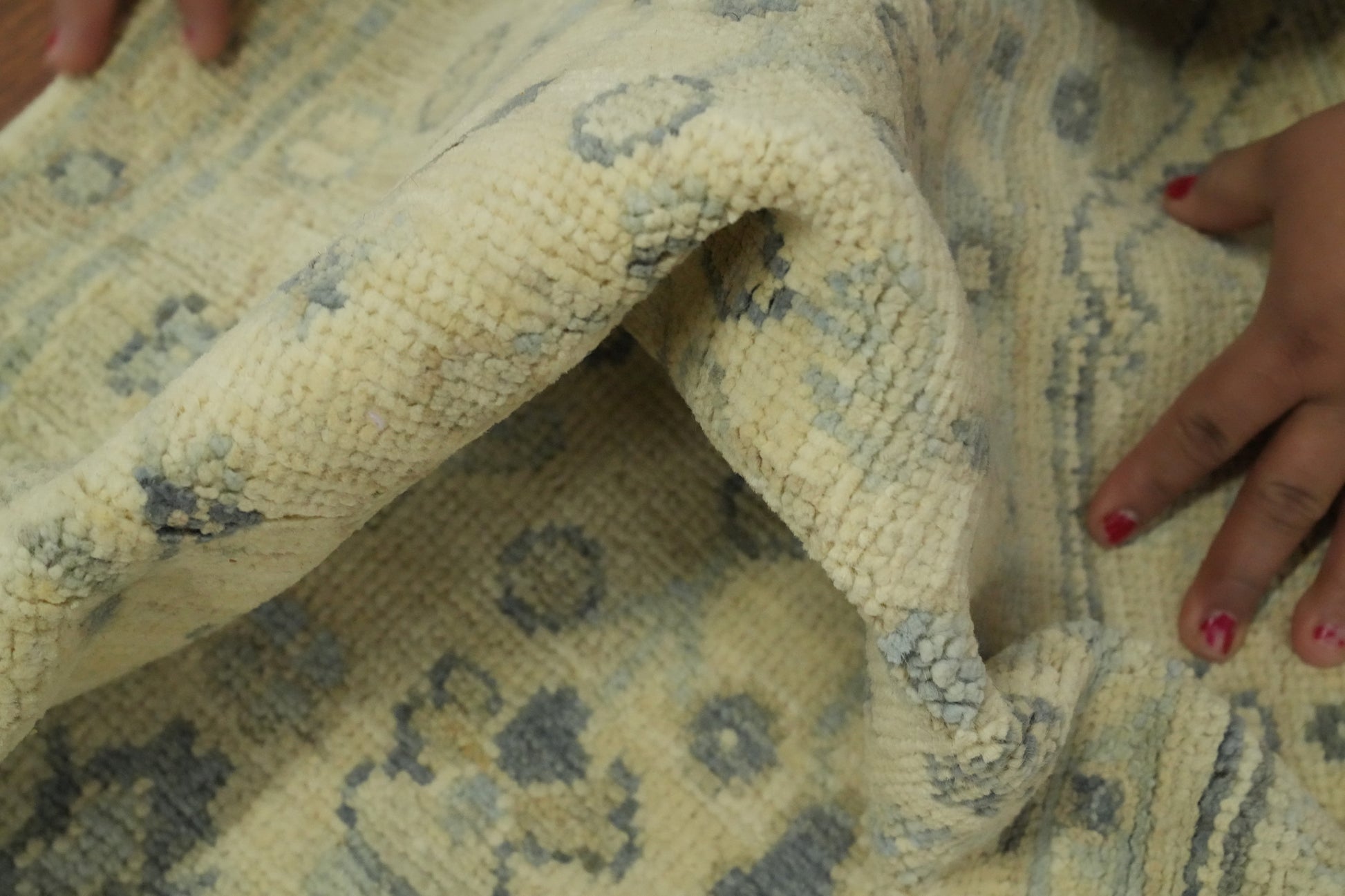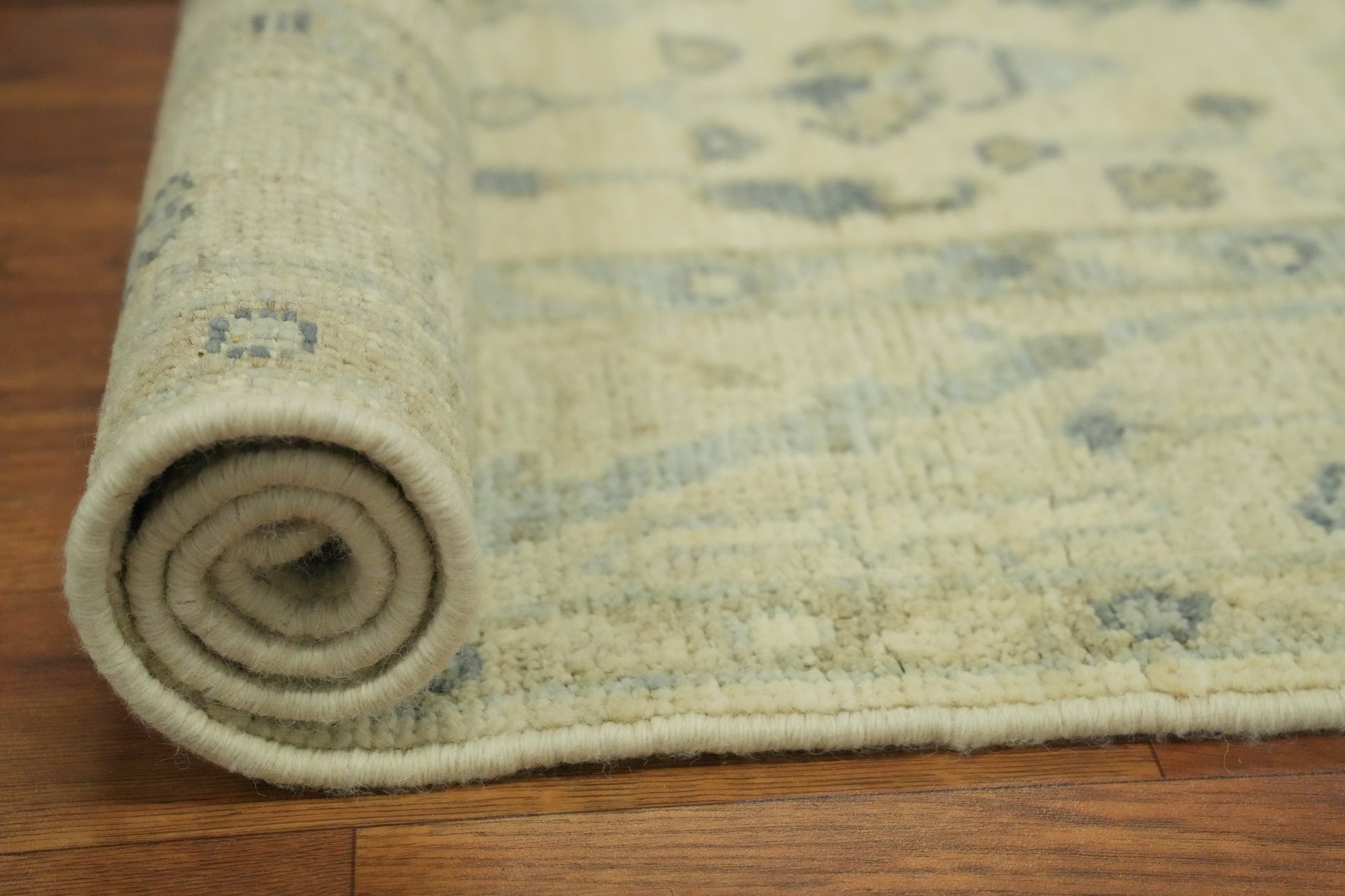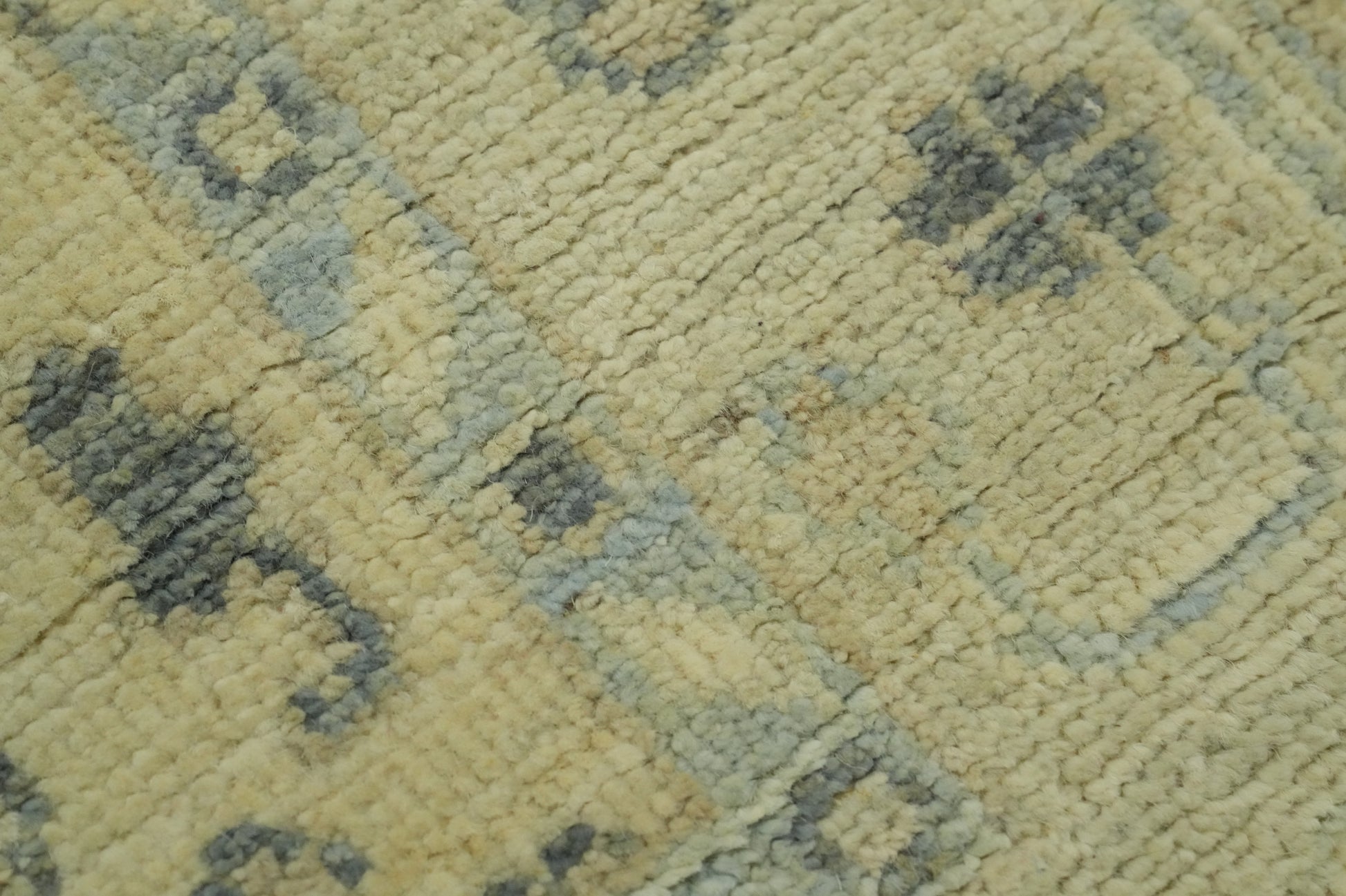 A Beautiful Genuine Turkey Oushak rug is Hand Knotted by skillful weavers in Turkey with 100% Wool Material. This rug is in New, First Quality condition. dimensions are 9' 8'' X 2' 11'' in foot and 295 X 89 in centimeter. the primary color is Beige & Ivories.