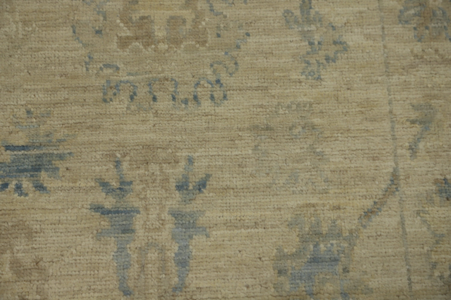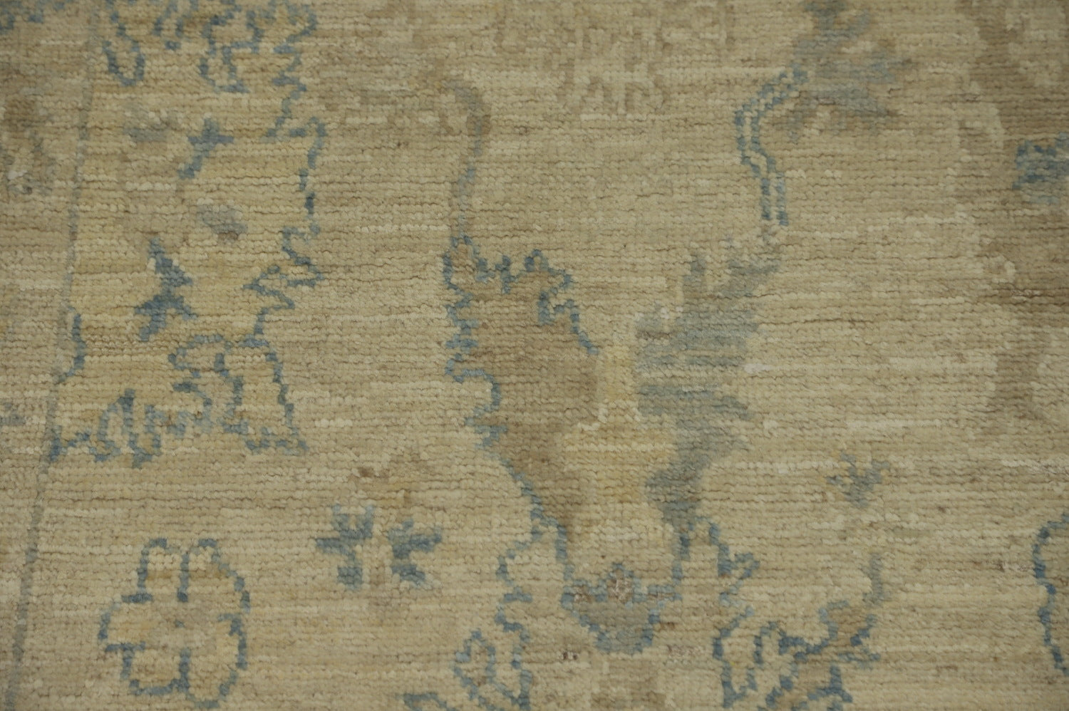 A Beautiful Genuine Turkey Oushak rug is Hand Knotted by skillful weavers in Turkey with 100% Wool Material. This rug is in New, First Quality condition. dimensions are 9' 8'' X 2' 11'' in foot and 295 X 89 in centimeter. the primary color is Beige & Ivories.
